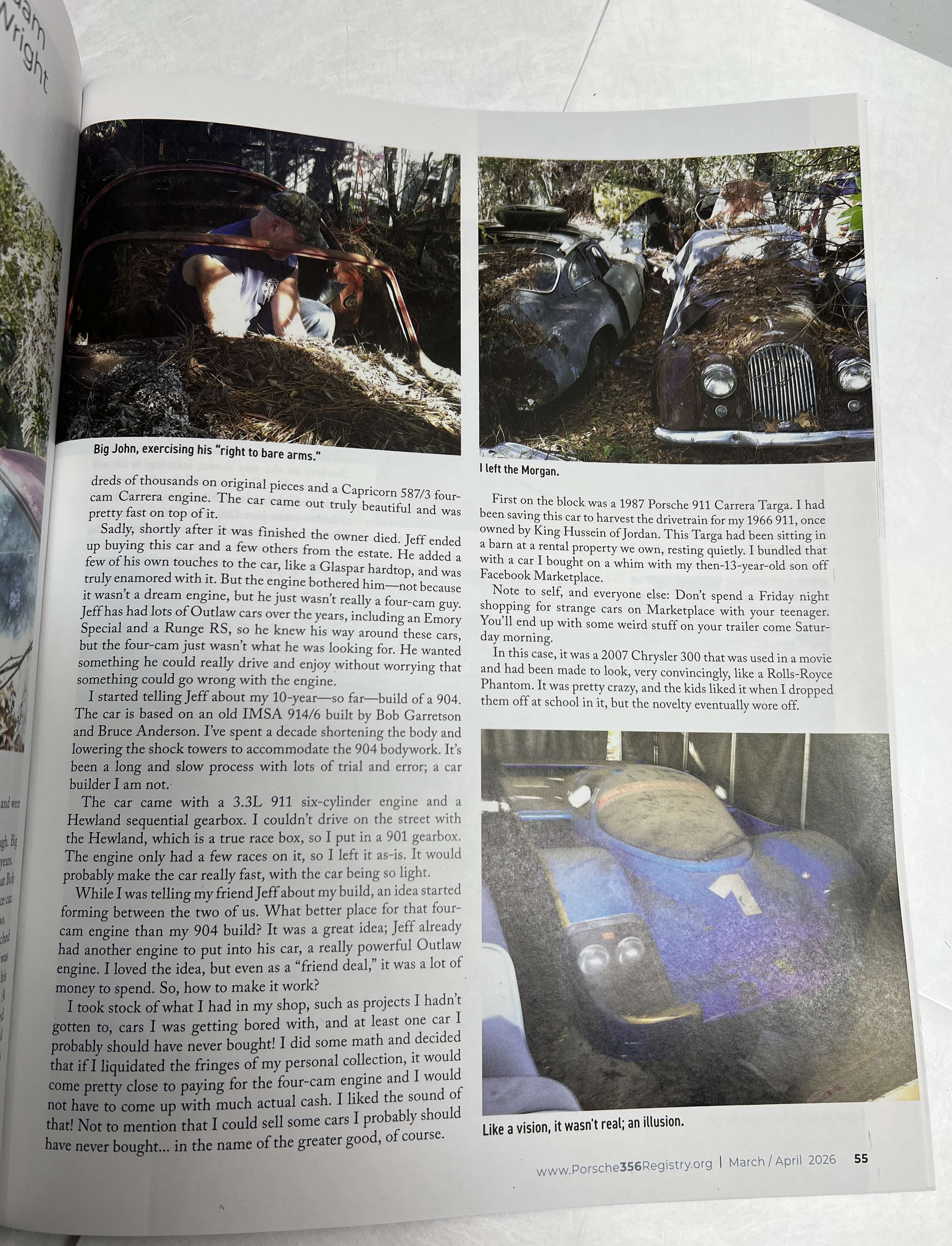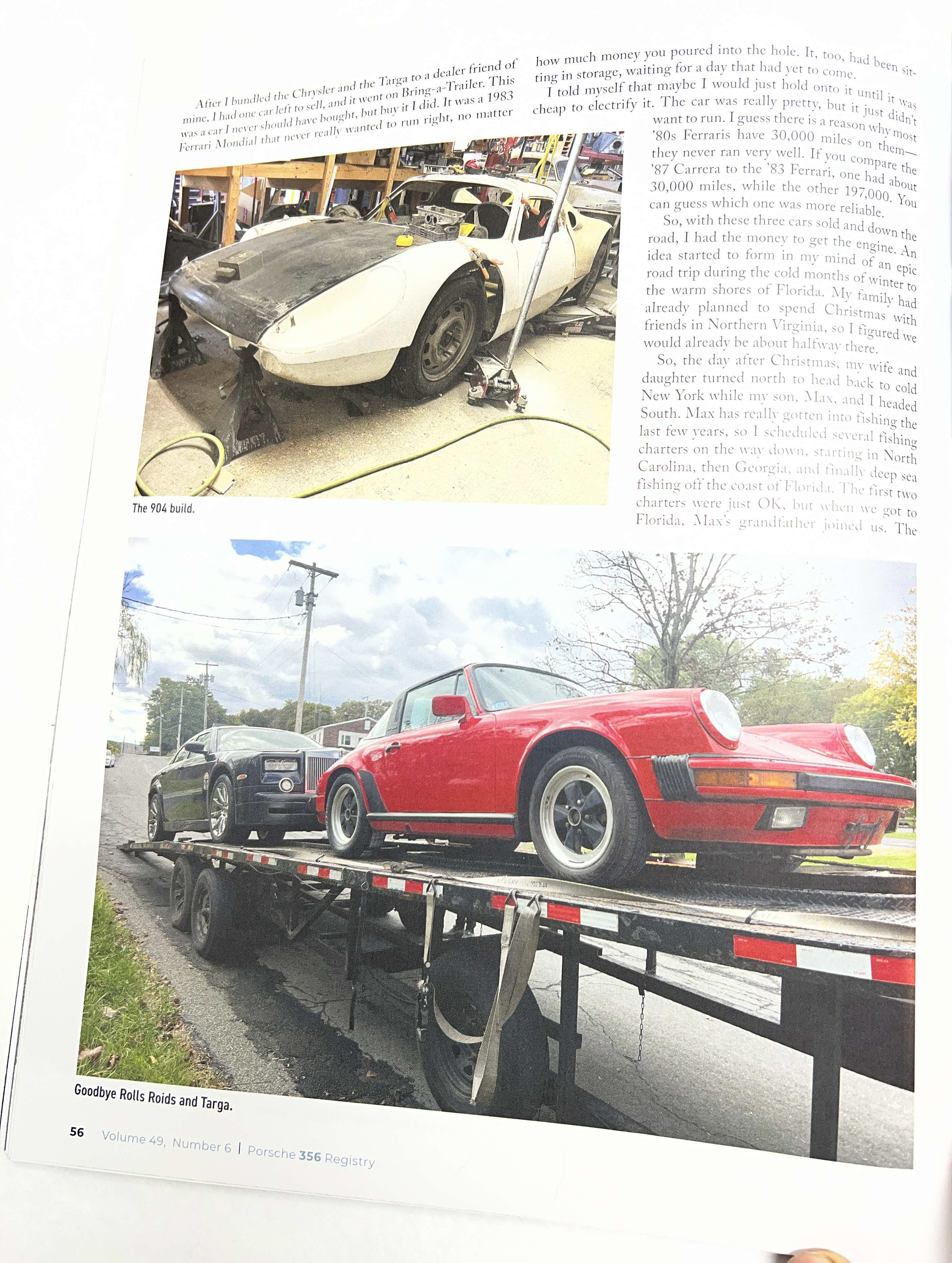 For those that follow my Barn Finding column in the Porsche 356 Registry Magazine you'll know I come across some cool stuff. But this last column is probably the most jam packed story ever, starting with a barn find 962 (spoiler, it's a prop roller), a 4 Cam Carrera Engine, a homemade 904 with IMSA provenance, a bootleg Rolls-Royce, a 356 C that had armadillo's living in it, a barn find 87 Carrera, and the worst Ferrari on the planet. I even worked in some deep sea fishing. If you're not a member of the Registry, here is this article free, hope it will entice you to join the best Porsche club in the world.