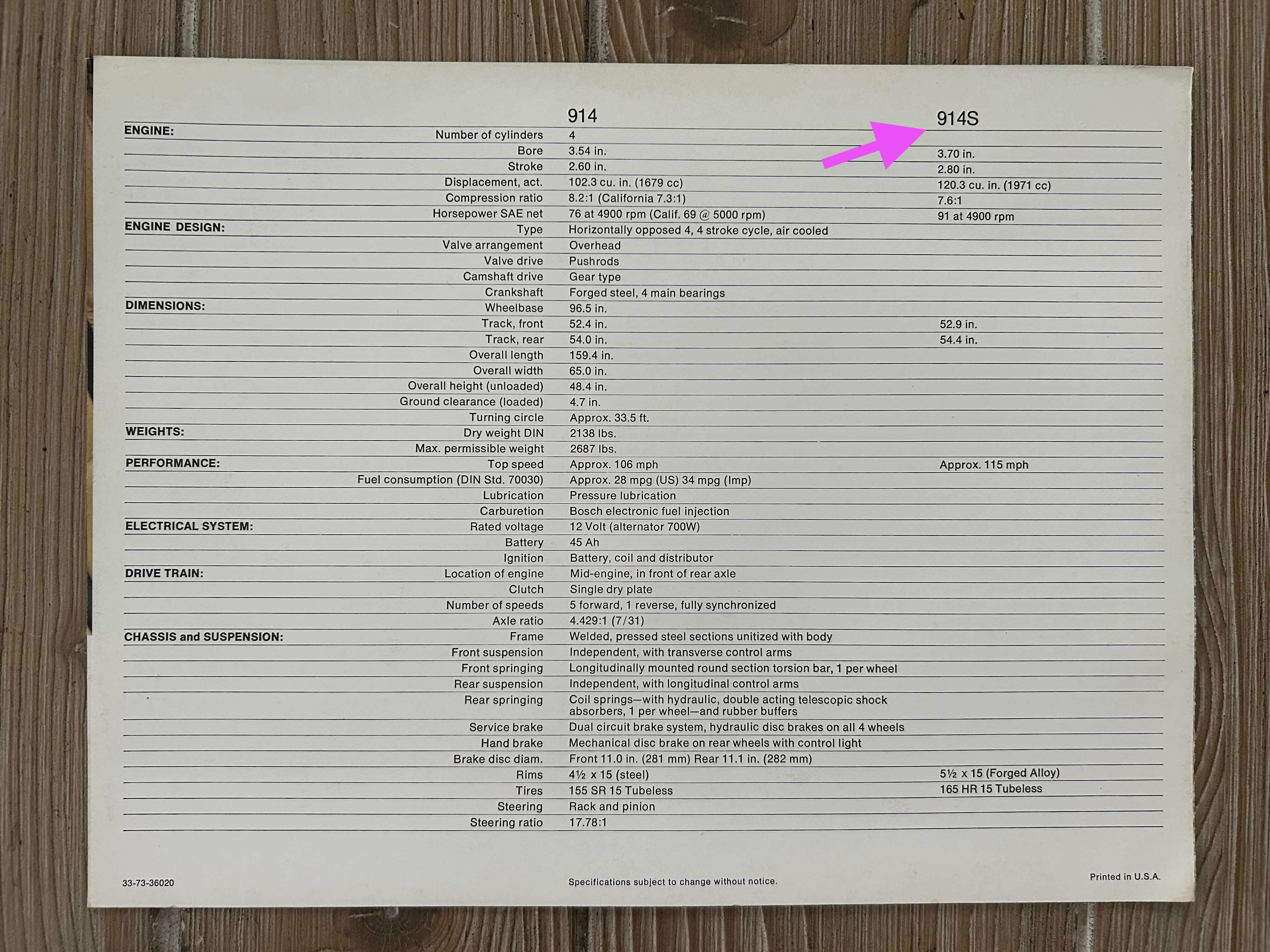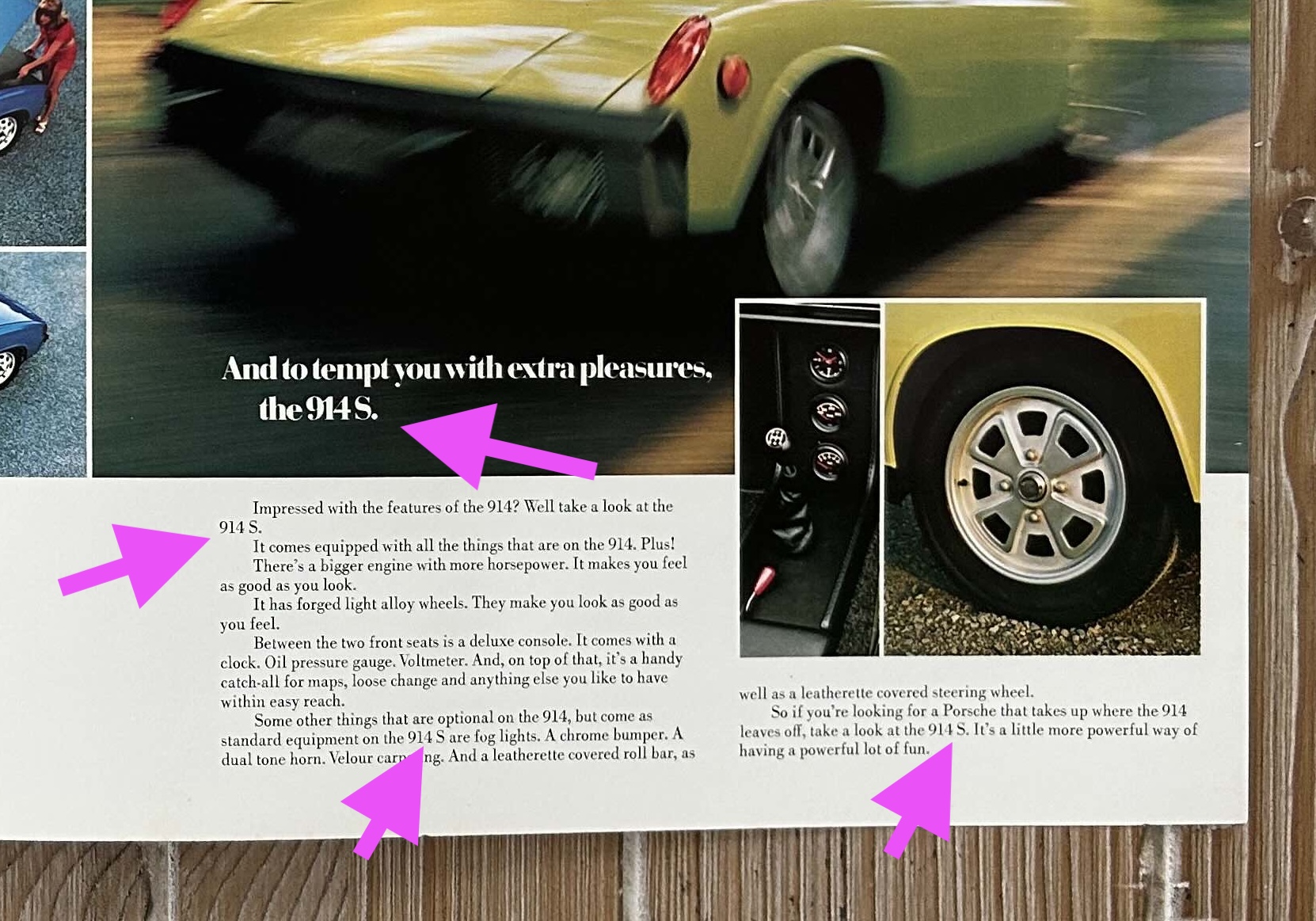 For anybody that needs a refresher or introduction to the history of the 914 S, you can check out this discussion from 2010: http://www.914world.com/bbs2/index.php?showtopic=107851 |