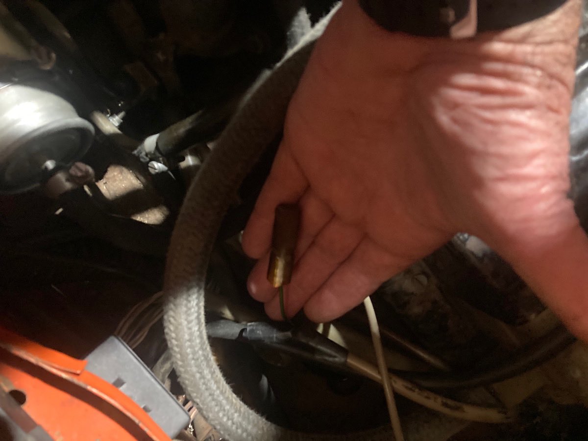 Does the wire from the oil temp at the taco plate go directly to the gauge in the center console? Or is there a connection i am missing in harness somewhere past the snorkel? 1974 2.0 with center console gauges. My wire connected to the console gauge at a single spade connector near the battery down where the fuel lines come into the engine compartment. |