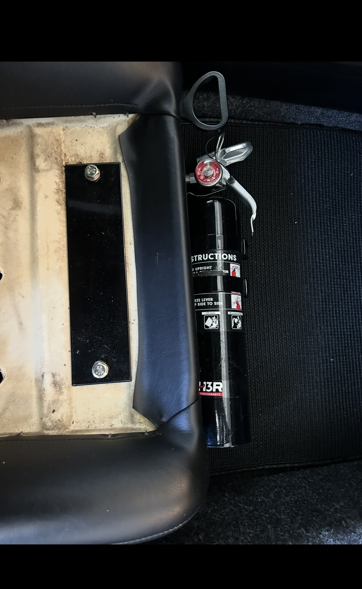 Ok ok you all talked me into it. I plan to powder paint them again provided I can still get decent pricing. With that said let’s pretend they are just bare aluminum with all the hardware to install onto the seat (not the fire extinguisher of your choice) . There are a few holes pre drilled for some but not all fire extinguishers and their mount systems. This is still just for "movable passenger seats"? I'm guessing there isn't anything to bolt to without the track for the early cars with fixed passenger seats? My mounts don’t bolt to the rails it sandwiched the fiberglass seat frame. Unfortunately I don’t have a fixed seat car to experiment with When you get around to it, maybe I can help with that. I have a 71 and a tape measure ![]() It just doesn’t make financial sense to even go into the 70-71 market. Most have been converted and to make $10 a mount is about the equivalent of to a Led Zeppelin from a business standpoint. The bolt holes on the rail that the fixed seat bucket bolts to, are centered on the hinges I put in for a adjustable pass seat. So those holes, if I understand how your bracket works, may just need a couple holes drilled in your bracket, then sandwiched between the seat bucket and the rail. If you want to pm me a couple measurements I'll check. Or maybe a fixed seat owner will understand what I am saying and will try for themselves. The sliders are centered to the hinge and I think I read that your bracket is pinched between the sliders and the seat. Now all I need it your credit card number. (lol) (IMG:style_emoticons/default/lol-2.gif) ![]() ![]() ![]() Ok for what ever reason people don’t understand how these mount. There are existing holes in the fiberglass seat shell (not the rails) the mount goes on the bottom of the seat shell then the upper rectangular aluminum washer sits on the top side of the fiberglass shell and then 2 8mm bolts fit through sandwich every thing together |