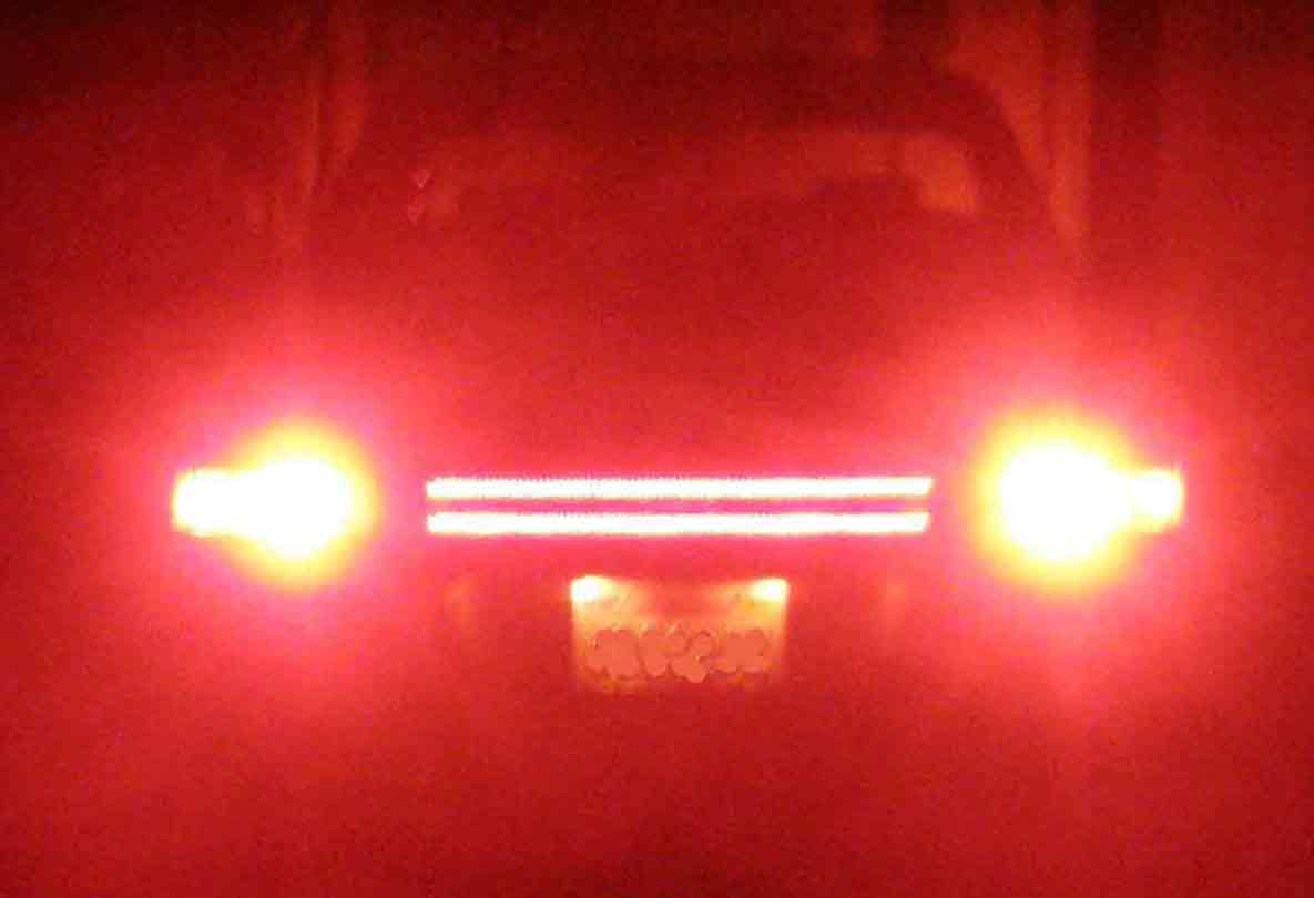 I was thinking wall of lights for that third break light. If you blind them they usually swerve so at least won't hit you? |