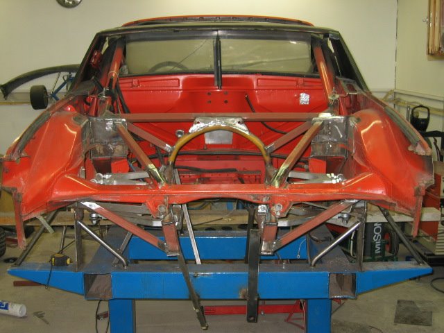 Here is front pictures. Still need to adjust the front with fenders and hood on before welding because it got bended a little while lifting.