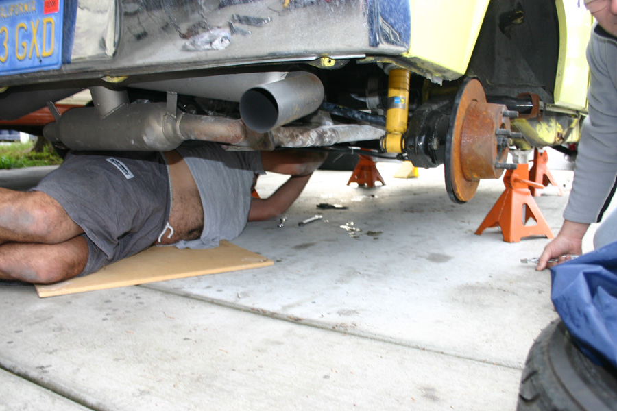Albert got a little stuck. We had to jack the car off the jack stands to get him out of there.