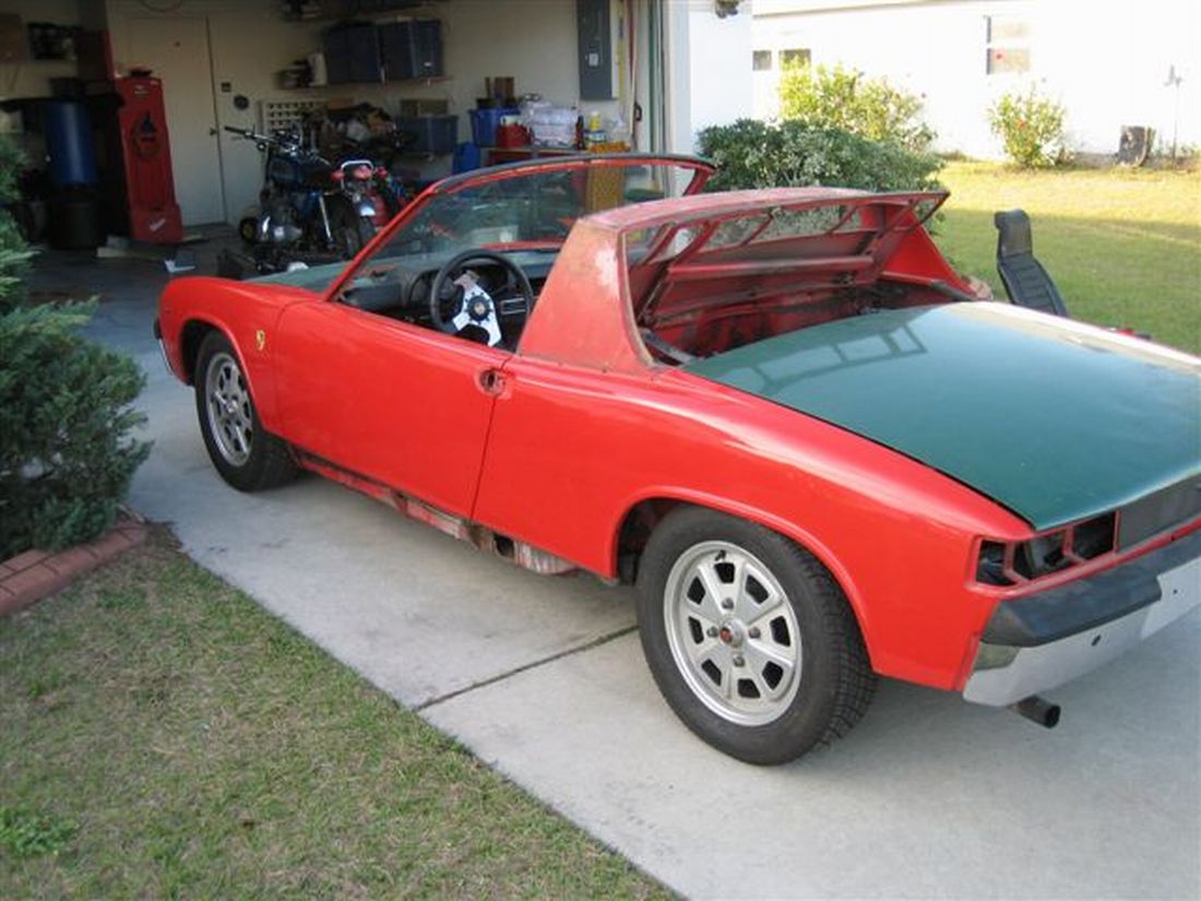 Well, I purchased another teener yesterday, red '74 2.0l with center console, front and rear sway bars. A new member, Chris Spence, had the car for sale locally. I looked at the car last weekend and decided I 'needed' another project car to work on. We completed the deal yesterday. I talked with Paul (URY914) and he agreed to help me transport the car from Chris' house to my new shop, thanks again Paul....