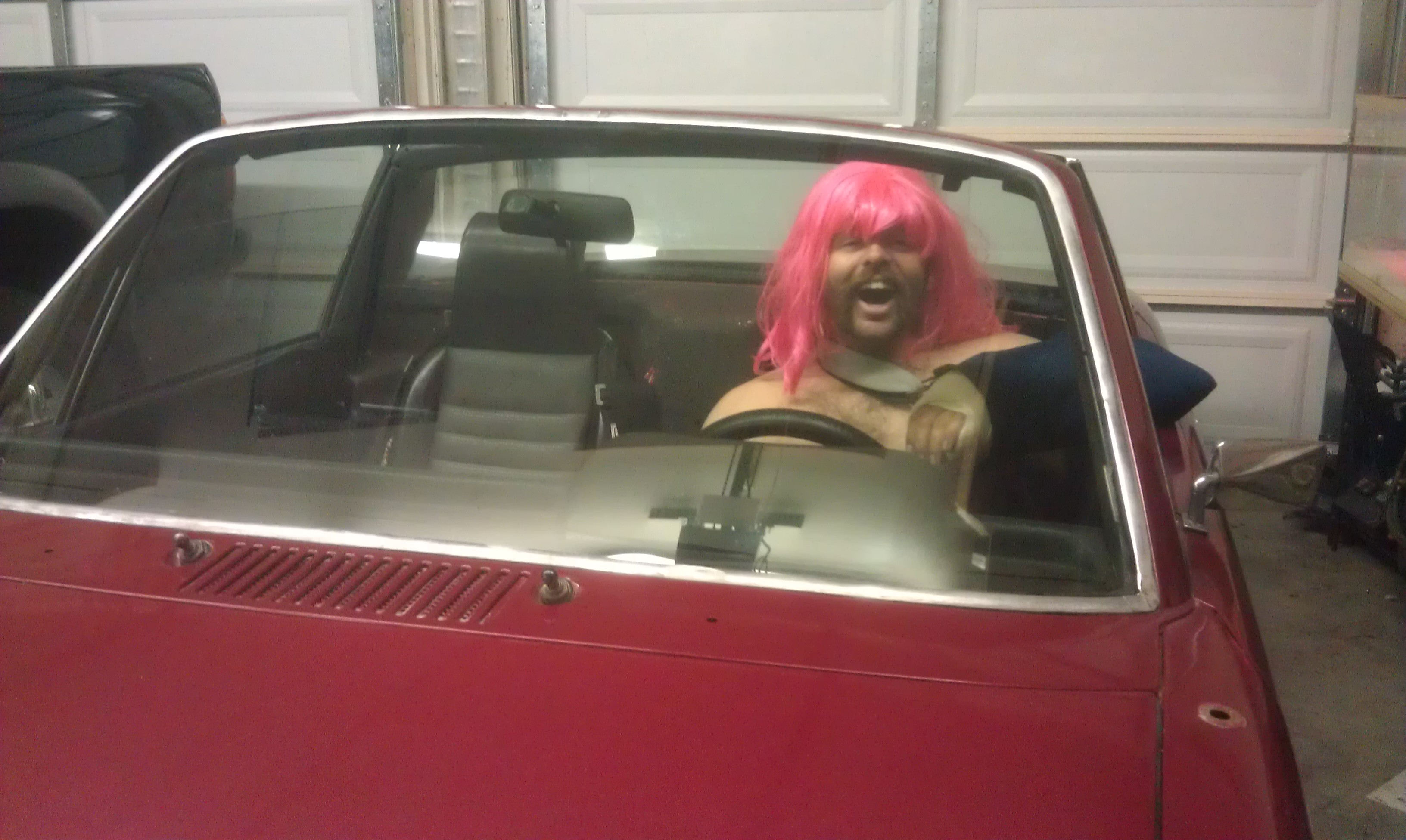 I've been asking the girlfriend to snap a shot of me in the car for weeks. As you can see, the devious woman she is took full advantage post-surgery...