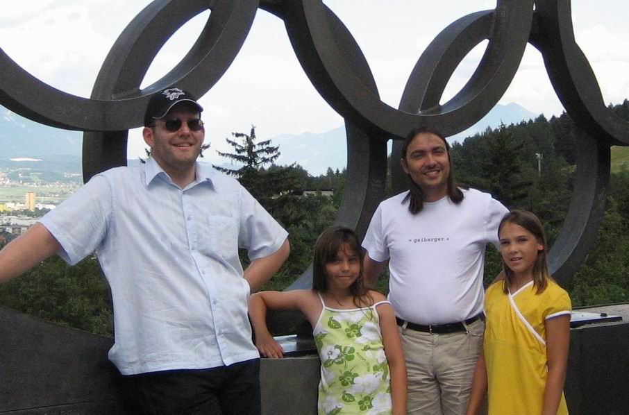 here I'm at the olympia monument in Innsbruck (oplympic winter games took place in 1964 & 1976 - at this place the olympic fire burned - it's at the ski jump hill) - I'm the guy at the left