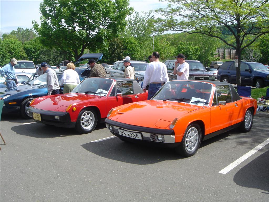 Here's a pic of both Dave's and my 914-6. Dave is on the right with hat and glasses. He was muddering for some time about one of the judges finding a finger load of dirt in his engine compartment. Even more so after several others volunteered there digits to search for the hidden location of the dirt to no avail.