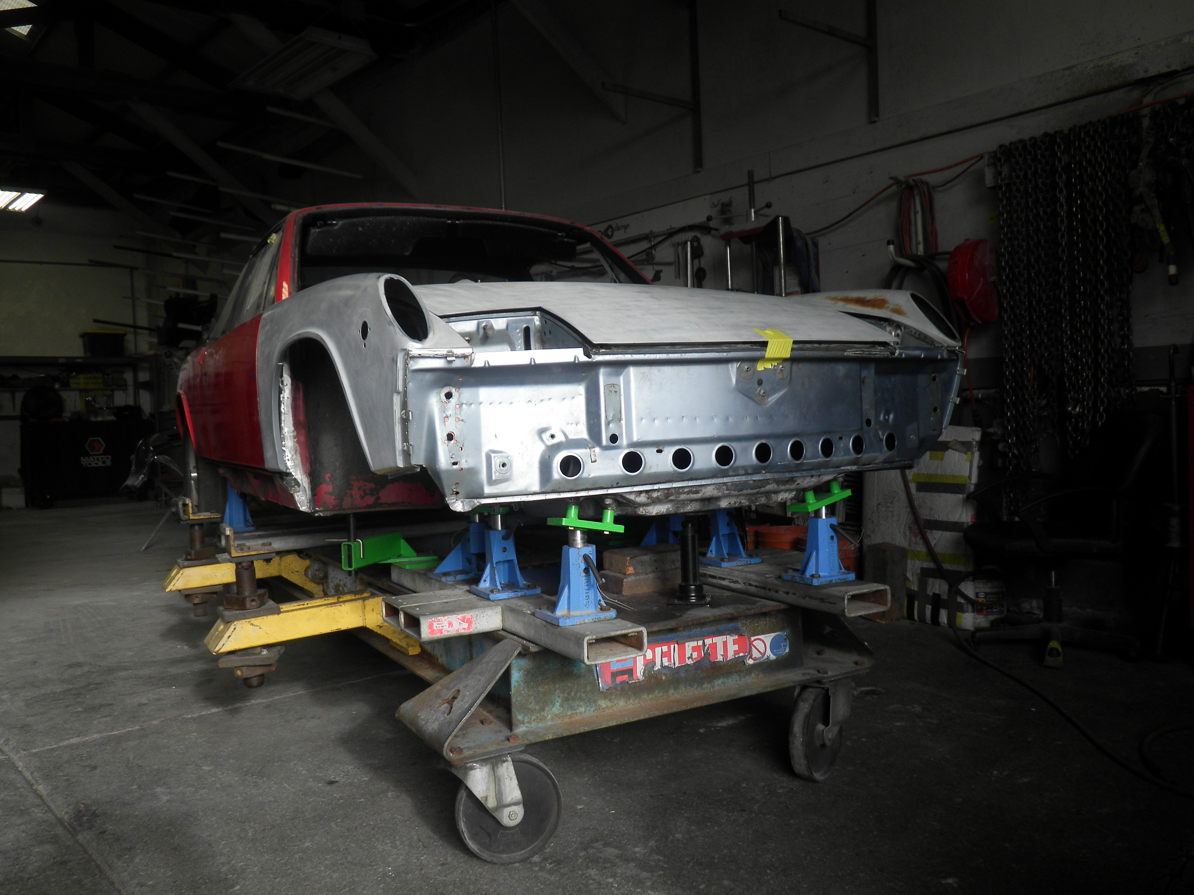 Hi Andy, Do you mind if I add this info here as well? May as well keep this thread alive with the bench and fixtures info for future references. I purchased a set of Celette 914 fixtures from a guy in CA and the BlackHawk bench from Perry. All now in Western New York. I mainly purchased these to fix my factory 6 and my brothers 74 914 which needed a lot of metal work. The word was that the Celette fixtures could be a bolt-on to the BlackHawk bench. There was even a law suite between the two about this. The issue that I just came across is that my bench and fixtures do not mate. The bench is way wider then the Celette fixtures. I even tried fitting the BlackHawk cross beams to the fixtures and still it's a no go. I looked into this over the weekend and found several differences between the two benches. I could make the Blackhawk bench work with the Celette fixtures but it's gonna take some time. I would need to add a few cross beams, a front flat plate, and drill some new holes into the I-beams. That's one way. The other way would be to make all new cross beams to fit between the bench and fixtures. I'm not sure which way to go yet but either way it needs to be flat when done. Does anyone know for sure if the Celette fixtures where a direct bolt-on to a BlackHawk bench? Or was there some in between fixtures that allowed that to happen? This info seams hard to find and verify. I was always under the impression the worked also. I wonder if you need the Celette cross beams too. That may be the issue. Shoot a couple photos of the deck on your bench. Do you have any threaded holes? I thought that I may need the Celette cross beams too but didn't want to spend more money if they wouldn't work. That's why I'm asking for someone that may have a set for measurements to confirm the fitment. If it is what I need that so be it but need to make sure that's the case. There's not much info out there that really clarifies that issue. The BlackHawk bench has no threaded holes but just drilled holes all the way down both sides of the I-beams. One big thing that I noticed is that the Celette bench has a large flat piece towards the front of their bench. The BlackHawk bench does not have this piece which is needed to mount the two front A-arm mounts and the Celette cross beam which holds the fixtures for the strut/cross member fixtures. I'll post a few pics of what I mean soon. I believe these are the cross beams that I may need. I still need to verify that. See the countersunk holes. Those are the holes used to bolt the crossmembers to the bench. I can't find my metric tape. It is still packed from the move. But check to see if you have holes in your bench that measure 33 3/8 center to center. There are other holes fro mounting the cross members but these are commonly used. Rick, I got 33 3/4'' center to center on the side to side. Down each I-beam is holes 1/2'' in diameter that are 4'' apart. I don't think the Celette adapter plates will work either as the have the same 4'' x 4'' spacing as the BlackHawk units. So not sure what to use. I believe that the Celette cross beams I posted a pic of is for the newer style Celette bases and not the Celette fixtures that I have. The fixtures that I have would mount right to the bench like the pic that Andy posted. I may have to just modify my bench to mount these fixtures. I looked into the Celette cross beams and it seams that the ones I posted are for the MZ tower system. That does me no good as my fixtures are the older more robust style. The fixture that I have need to be mounted on the Bench and not the cross beams like the MZ system. I spoke to someone about the Celette cross braces and they will not work for me. Looks like a custom set of cross braces need to be made to mate the fixtures to the bench. I'm now wondering if there was a set of cross braces that worked for mounting the Celette fixtures to the BlackHawk. So, after going back n forth on how to resolve this I decided to make some custom cross braces to mount the fixtures. The other option was buying a 1/2 '' flat sheet of steel and have all custom holes cut to mate the two. For ease of install and cost I went with the custom braces. My brother and I started mounting the fixtures on Friday and lowered the car onto the bench. It looks like this will work out just fine. Now to spend the next few days measuring, cutting, aligning, drilling, and welding the new cross beams. Some pics of what it looks like now. I'll post pics of the final product when done. Attached image(s) ![]() ![]() |