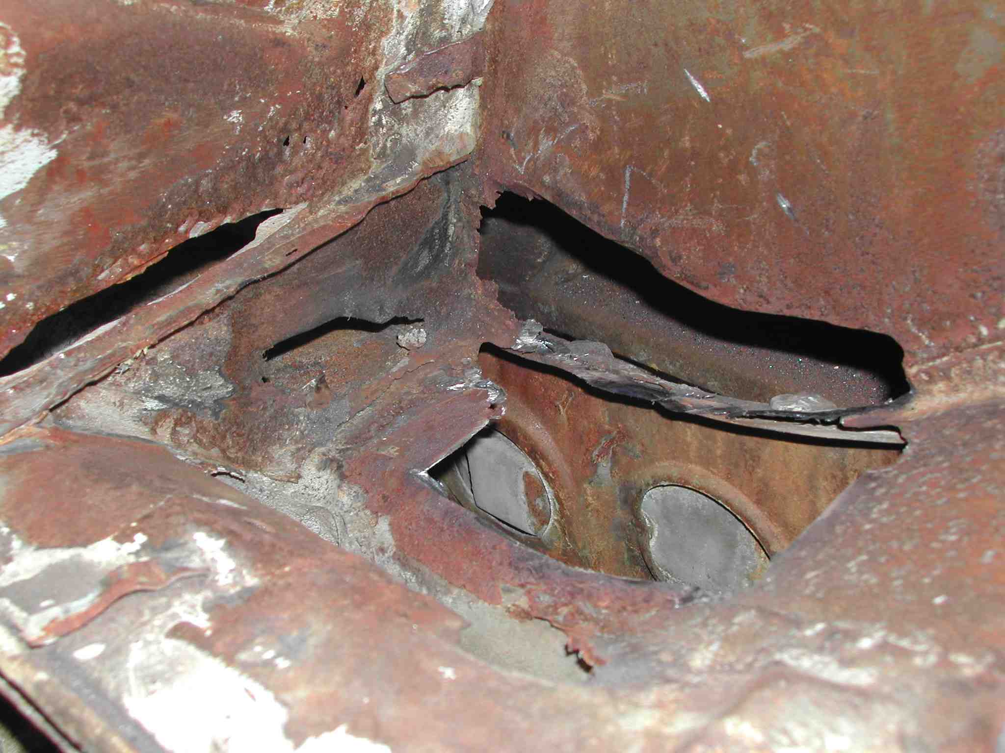 Here's another pic of the suspension console with paint. "Zero Rust", thanks Proto... I'm laying all my faith in that name man. Cleaned out the longitudinal best I could inside the hell hole area and sprayed in there as well before I welded back up the hell hole. It was actually in great shape inside. Here's the console;