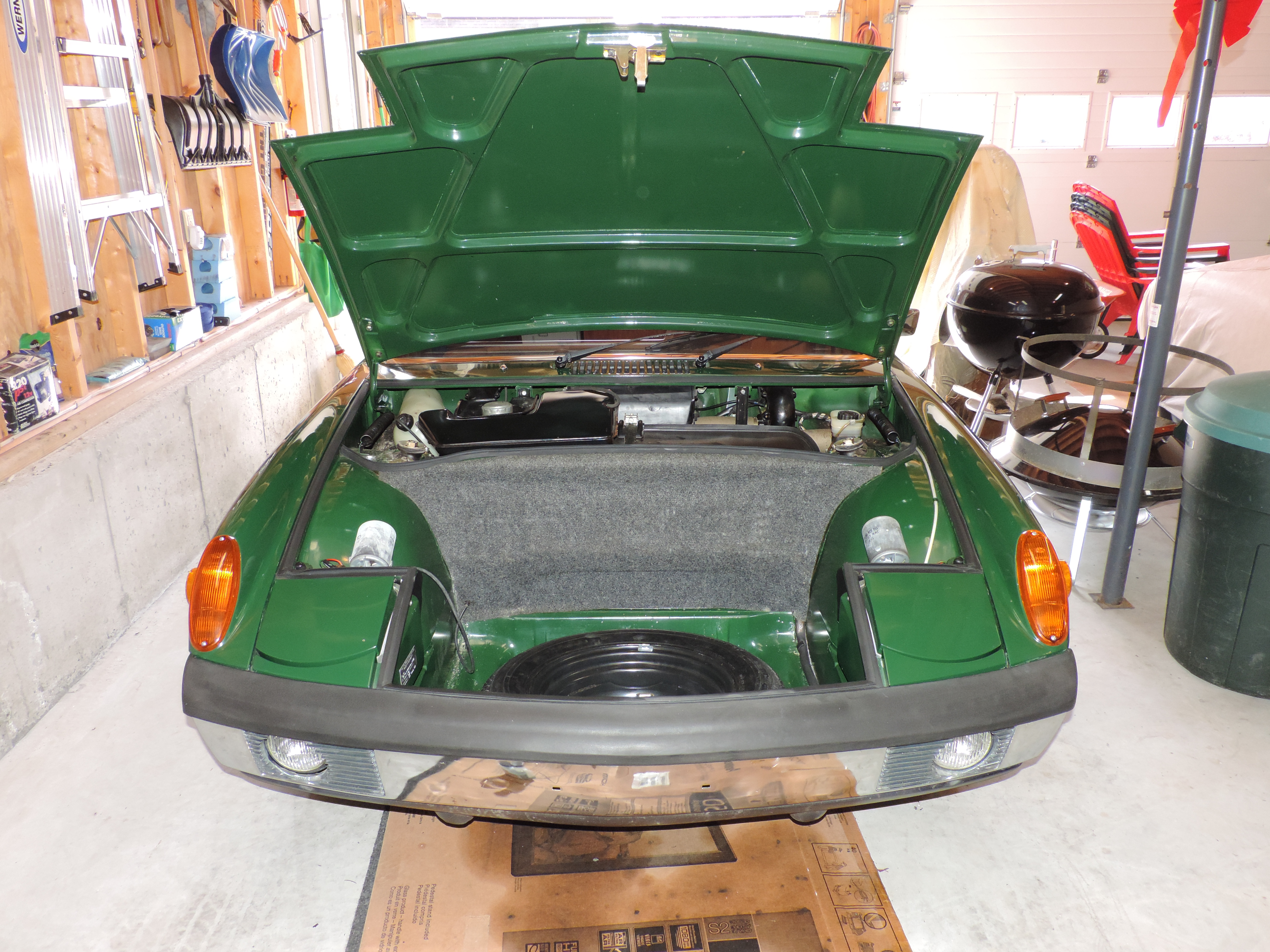 Hi guys, I rarely stray into the originality section, given all the stupid things the PO did to my car - it'll never be original. However, I do appreciate all the information you have post and this section is very entertaining to read! Question - my car never had the board over the spare tire recess in the front trunk. In fact, I don't even have a spare. I think I can probably cut some plywood to approximate the original piece, but I have no idea how it attaches or stays in position. It appears from the pictures that it rides on top of the curved support pieces at the front of the trunk, but what about at the back, at the trunk firewall? There are no obvious screws or mounts in my car to support the back of that board. Thanks for your help! -George Hey George, That board just sits in there. Doesn't attach to anything. I will probably drive a 914 to the Daytona on TV get together on Saturday so you can look at yourself. |