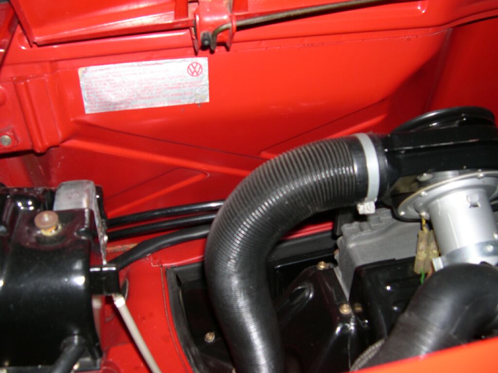 I love the nostalgic vintage look of your engine bay Pat. For me, thats alot of what this hobby is about. I wish I could find those colored hoses somehere, I have looked everywhere. I am tempted to beach out the available gray fabric lines and try to dye them the right color. I have found a high temp ceramic coating from Techline Coatings (titanium) that is a dead wringer for the stock gray high temp paint on the intake tubes, muffler and heat exchangers, and its more durable. You might look into it. What is the issue with using new stainless screws, is it that big of a deduct? Why not change the coil/bracket too? Thanks for the tip on the Techline Coatings stuff - will try it when the motor comes out this fall. Stainless screws are not orig. They make perfect sense, but will most likely get you a deduct in high-end competition. The ugly cad plated "cheesheads" are orig. Umm, my coil bracket is original! |