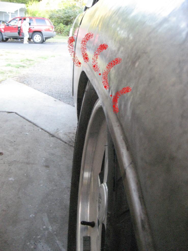 the part in red is bowed under a little bit and I am not getting enough stretch from front to rear to add the width inside the fender opening. the curvature top to bottom i like but again i cannot get the width i need , like the actual fender detail isnt pushing out for the width i need..oh by the way 225/50's on 16x7's in back..i need about another inch or so Attached thumbnail(s)