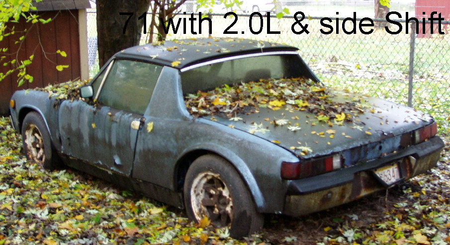 QUOTE Whats the VIN and numbers from the front drivers door plate on the 74 car? Is it a repaint by chance? The vin is 4742915266. Are you thinking it my be a LE car??? It does have all the goodies, fogs, sway bars, wheels, 2.0L, rear window defroster. Not sure if it is a repaint or not. I will get it home Thursday and will have a better look then. - Garold (The Fred Sanford of 914s) |