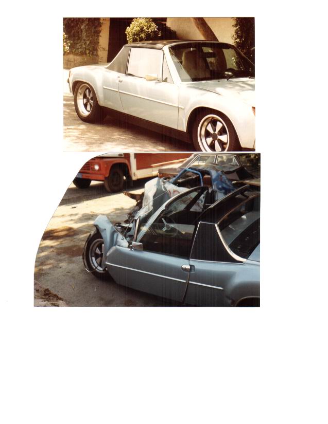I had a 67 Mustang Convertable that I restored from the ground up. When I moved to Hollywood, CA I wrecked it on Mulhulen Dr (that V8 was pushing the front end in funny ways) and almost died. So I went out in search of a car that would make it around the corner that almost killed me! Low and behold I found my first 914 and it was a 6....wow what a car! Well after many years of pleasure my pride and joy was totaled by some drunk driver in a Lincoln Town Car. So I just keep buying them and trying to get the original feeling back with my first one. Some day my current 6 will be better than the old one!! Photo Proof: WOWSERS! That's incredible! I mean a 914 getting hit head on by a Lincoln Town car- and the passenger compartement surviving that well. Any idea what the combined speed of impact was and the circumstances/angle? I've heard that 914's have great crumple zones but your pic looks like proof positive of the best... |