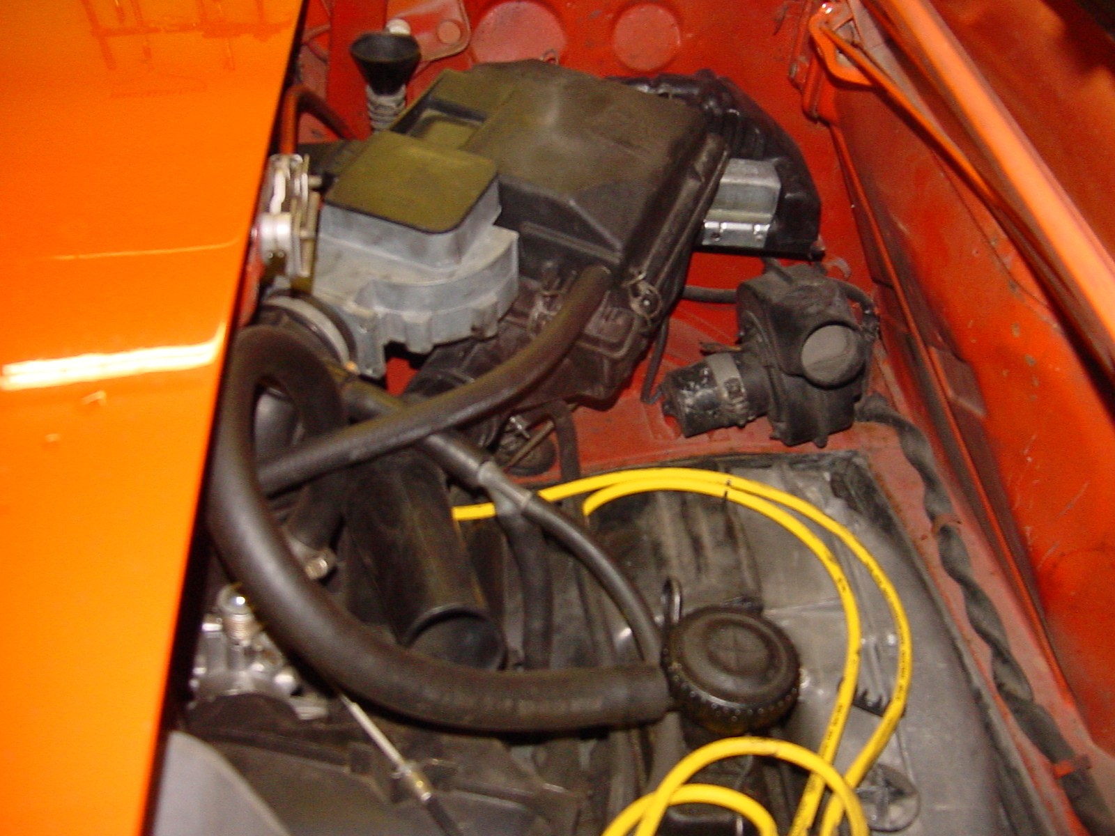 Here you go.. ask any questions you have about what you see. And remember, this car is no garage queen. Betty drives him to work every day, rain or shine. ![]() ![]() ![]() ![]() ![]() ![]() Did you change the tin on the passenger side to get the coil to mount?? What compressor is that?? Left side of fuel relay is a 'black' connector, right side is the square white molex connector?? Cause of fire..?? I like the 'nylon' rollers better!!!!!!less noise and vibration.. and smoother operation... MPG?? Who installed A/C?? What is your vin# and month of mfr....? Was the metal charcoal canister stock?? Later 74's had plastic and were in the rear...As yours...but yours is metal.. What was the original color of the manifold intake tubes?? How do you like your 1.8?? Thanx Rx |