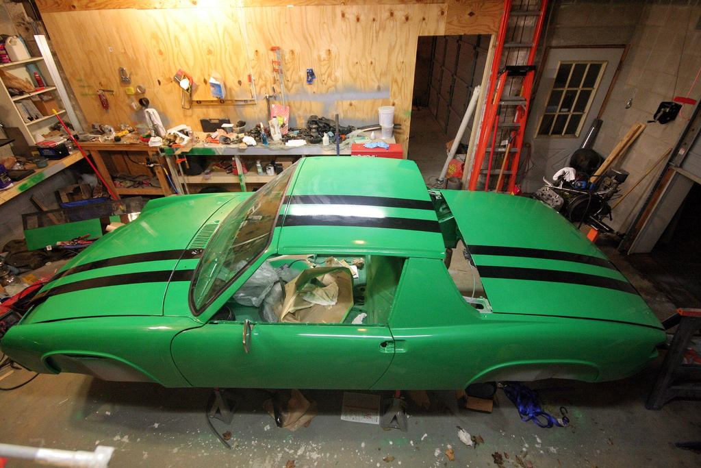 I really like the color and the stripes. Are the stripes painted on or decals? The assembly from this point is the fun part . . . my car looked like yours about 3 months ago, now its complete save for the front bumper. I found that the assembly got a lot faster the close I got to finished. |