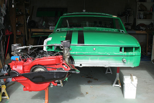 Its really (REALLY) nice out right now, and supposed to get crappy later AND I cleaned the garage last night so I thought I would take some pics of the engine in is freshly painted tin.