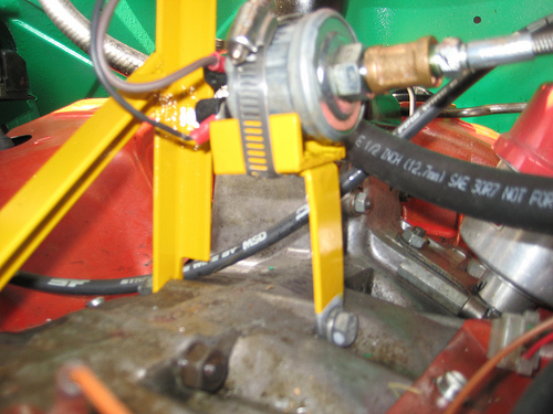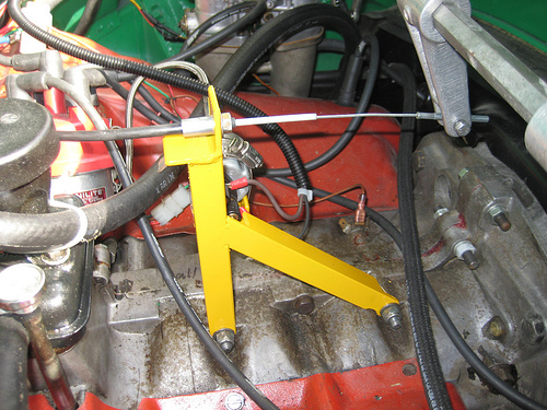 Just an update to show pictures of the brackets I made. I needed a better way to hold the VDO pressure and idiot light sender. I also needed to make a throttle cable bracket since I moved the linkage from the front of the carbs to the back of the carbs.