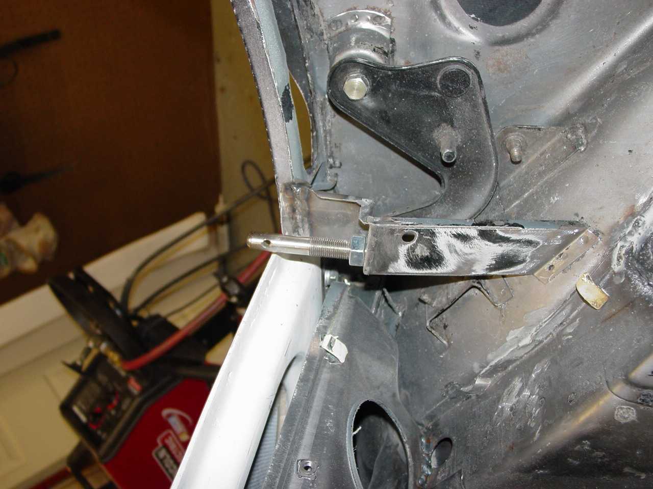 The next few pics are of the things I had to weld in...engine mount, misc holes, hood pin locations my reworked tail shifter boot an few holes in the engine bay, seems under the rear suspension, stiff kit for the trailing arms la de da
