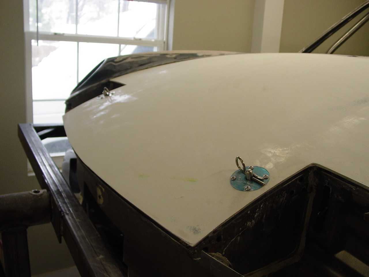 a few more of my rear end suspension bracing, hood pin brackets and hoods with hood pins and a brief shot of my GT engine lid!