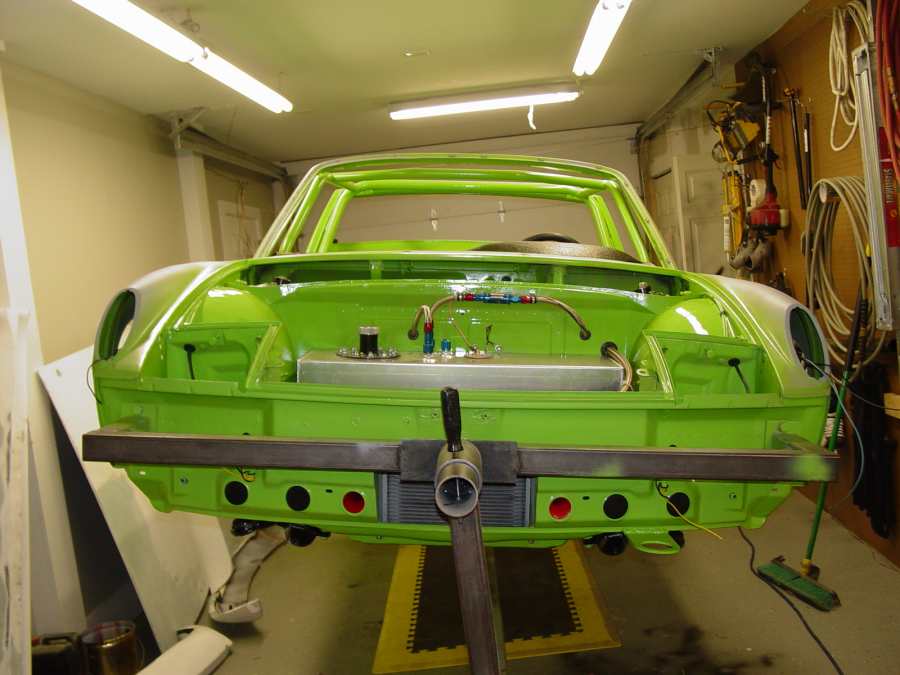 The color is POR 137 Thanks I dig it! This is a great build. I really like all the detailed pictures. I'm starting a subie conversion and have printed many of your pictures for reference of body details and your ideas. I am trying to decide how to stiffen the body for street use. I am going to build a front motor mount similiar to your's for the subie. The only suggestion I would give is to run the ground to the motor or tranny first then to the body or also to the body. I would not count on a forever good ground through the body to the motor. I imagine you are going to use the ground strap from the tranny to the body. This means you have two areas that have to remain good. Also use dielectric gease on all the connections. A few years down to road and you will be happy you did. You have gone to great detail on your build, I love it. What brand and type of paint did you use? I read where it was self etching primer so I guess it was two part epoxy primer and probably non sanding so that will probably be forever. Is the top coat single stage urethane? I wish the 914 group could get a fleet discount from ppg or some other company. We could cut paint cost in half. For a short time I could get a discount on ppg and it was about 40% less on the price. I'm anxious to see the completion. Thanks again for the pictures I probably would have paid cash for them. Charlie |
