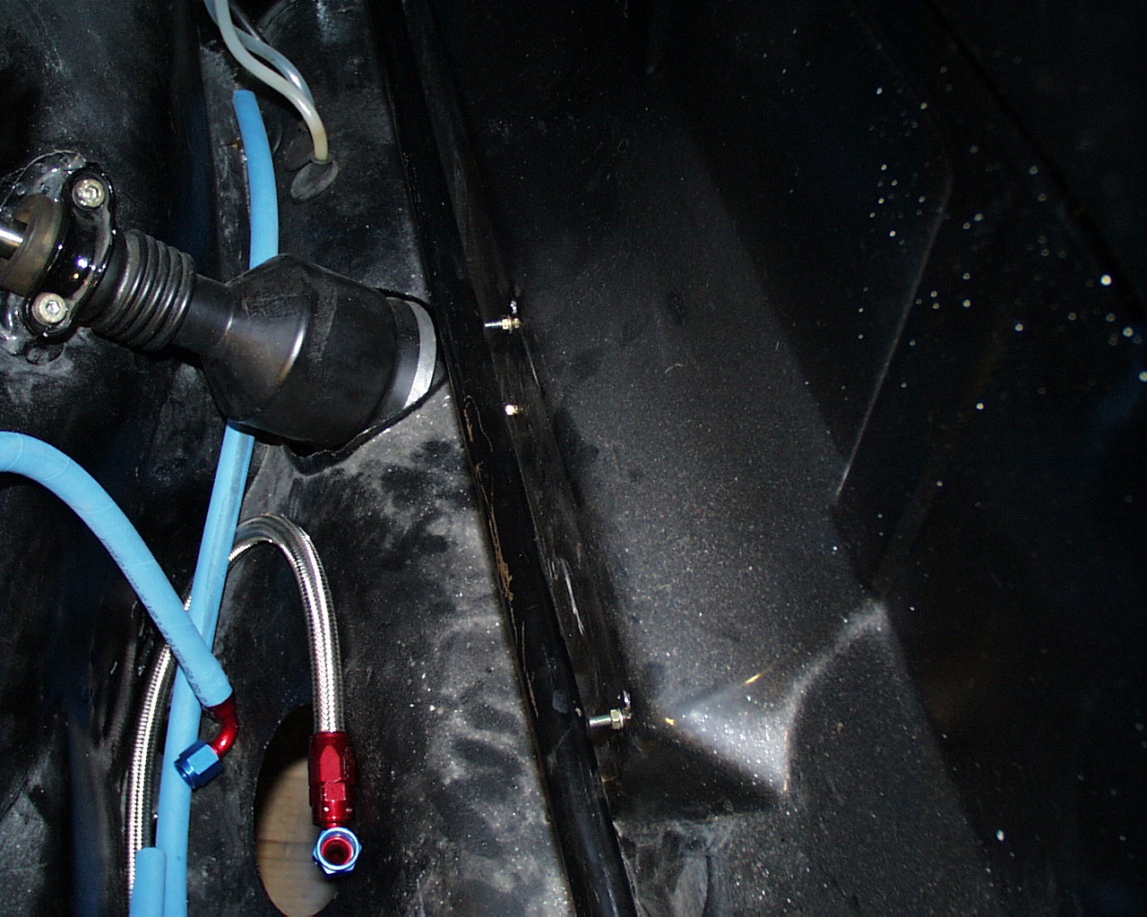 I have both, and at one time had the push on fitting blue stuff running down the tunnel. The SS stuff is so damn stiff when the hose is that short. I brazed 6AN fittings on my tanks tube fittings. Attached image(s)