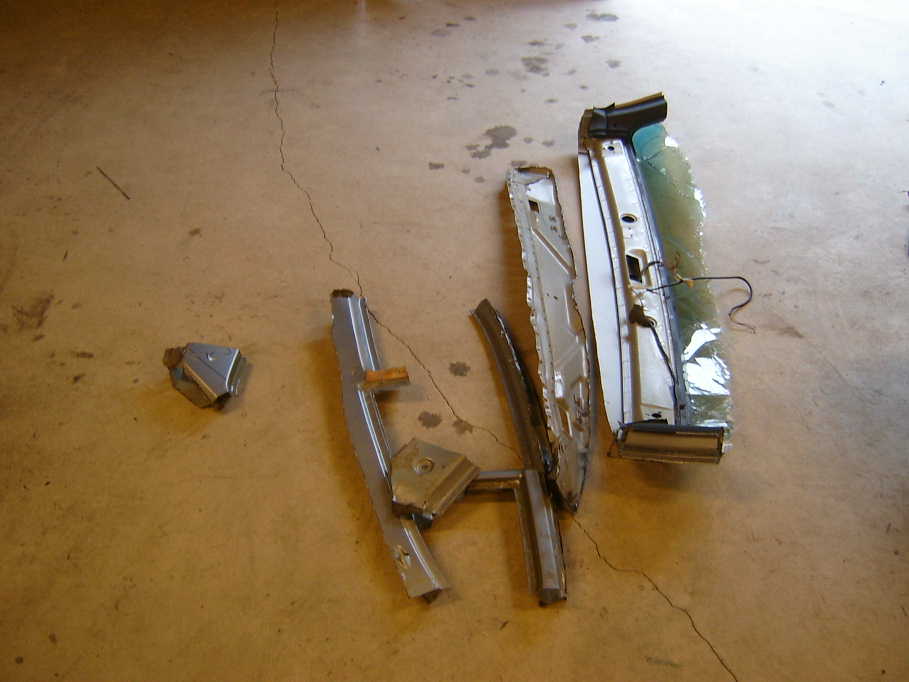 Here are the final first version removed pieces from the 944 roof section. I wound up having to build and box in top out longitudes for both sides to acomplish my goal, stiff as a 916, but still with an open roof. It was too cool watching the Yard Dude cut the roof off the 944, he pretty much sawzall'd right through everything, glass, sunroof cables etc. 944's are plentiful at bone yards right now. Last post for the night, more to come later this week. (IMG:style_emoticons/default/wink.gif)