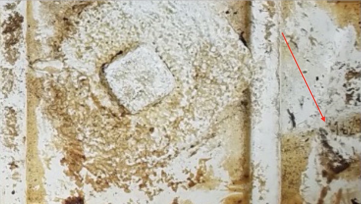 closeup shows no holes in bucket, but holes for the body tag.