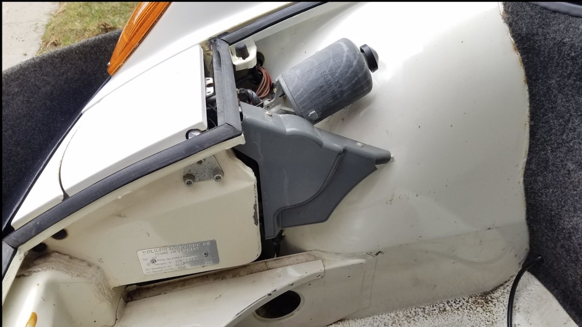 Sean has provided the following photos. I have no idea why there is no rivet holes for the VW badge on the headlight bucket unless it was replaced by a 1975 bucket.