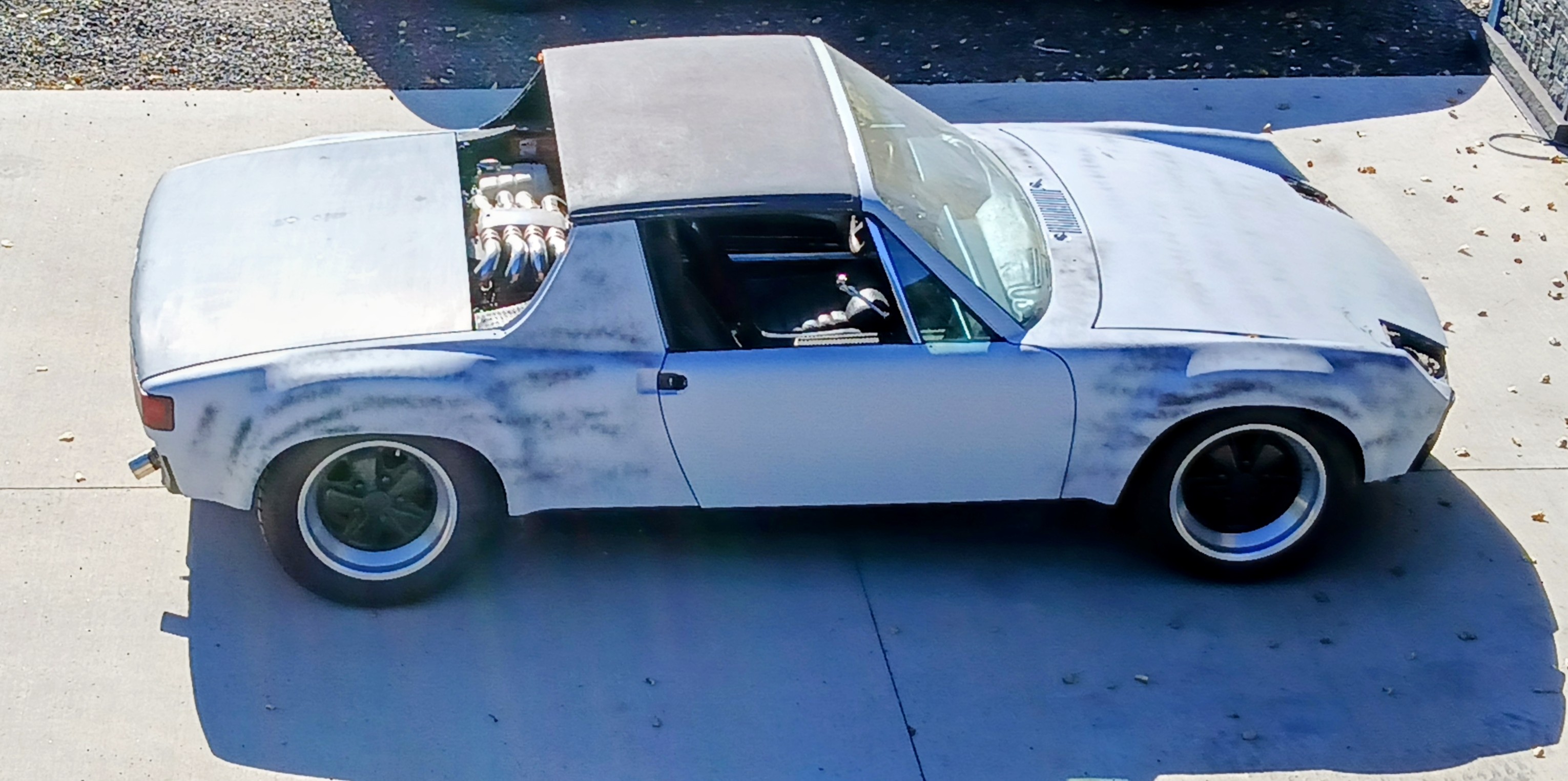 I went to my local FLAPS. Seems they are changing paint lines. Okay, Give me the next best thing. Brought it home and went to shoot on a base coat. The paint was defective. It looked like it had sand in it. Went back to the FLAPS. They opened the can of binder and it was bad. Looked like sand in the bottom of the can. I spent the rest of my vacation stripping the defective paint off the car. (IMG:style_emoticons/default/dry.gif) Anyway, since then I have it back in an epoxy primer and I drove it around with no bumpers or rear lid to get some test miles on the transaxle. The odometer is showing 65 miles. I dumped the clutch in the driveway to test out clutch, custom built flywheel and all the other custom parts I made in my shop. Fortunately I discovered while in the driveway the 914-4 axle was just a little short. The balls are riding on the outer side of the joint. when I dumped the clutch the balls popped out of the 944 inboard CV. I had another axle that is longer but too long. I brought it to a machinist friend and had him cut the stop back 1/4" on both ends. I have it in the car and I believe this is the correct length now. When I changed the cams over the winter I installed the lifters I sourced with the 210 "S" cams. Turns out one of the lifters is bad. It is not pumping up and makes a ticking noise. So the engine is coming back out over the winter and I will get that corrected. Yup, winter is coming here faster than I would like to see. (IMG:style_emoticons/default/bruce.gif) |