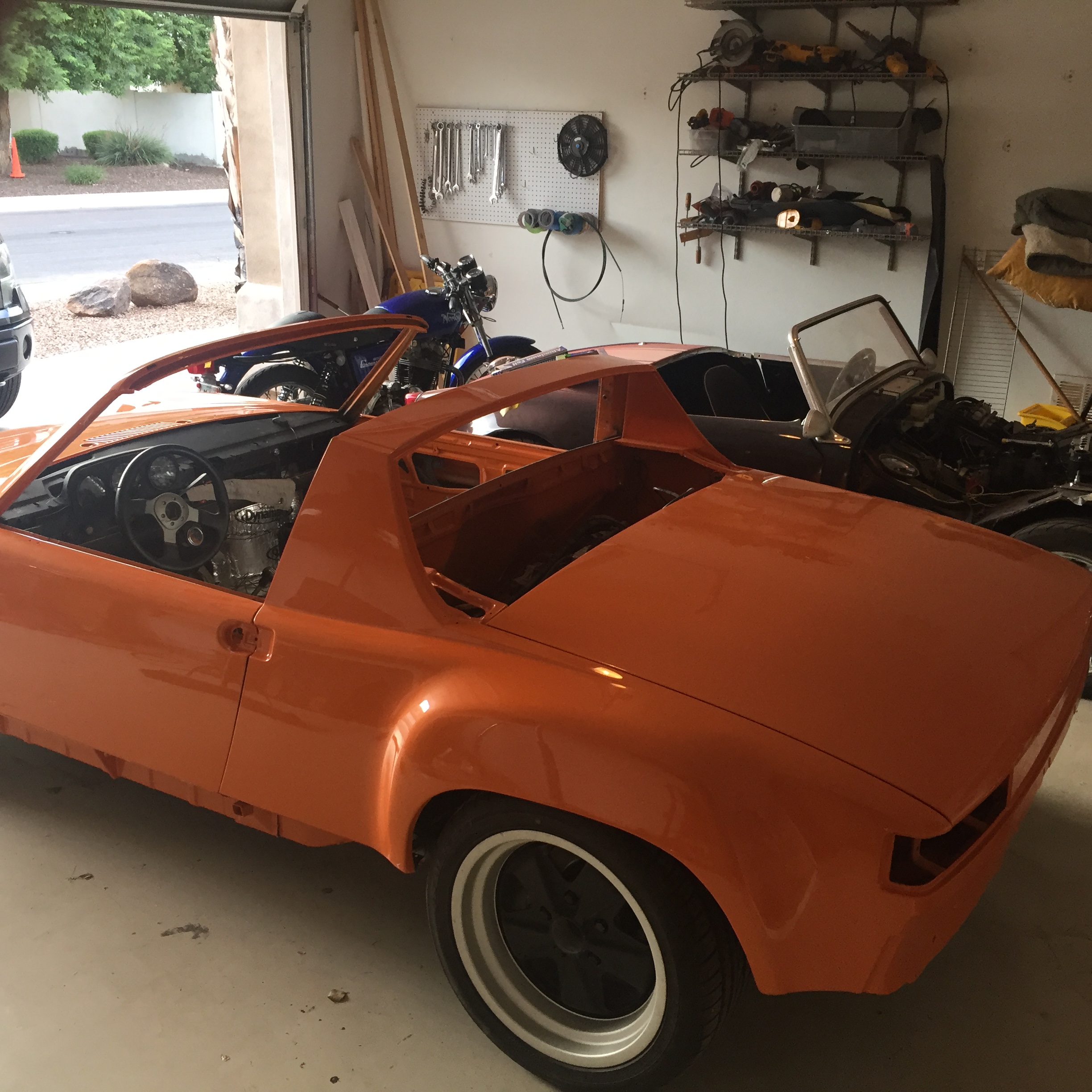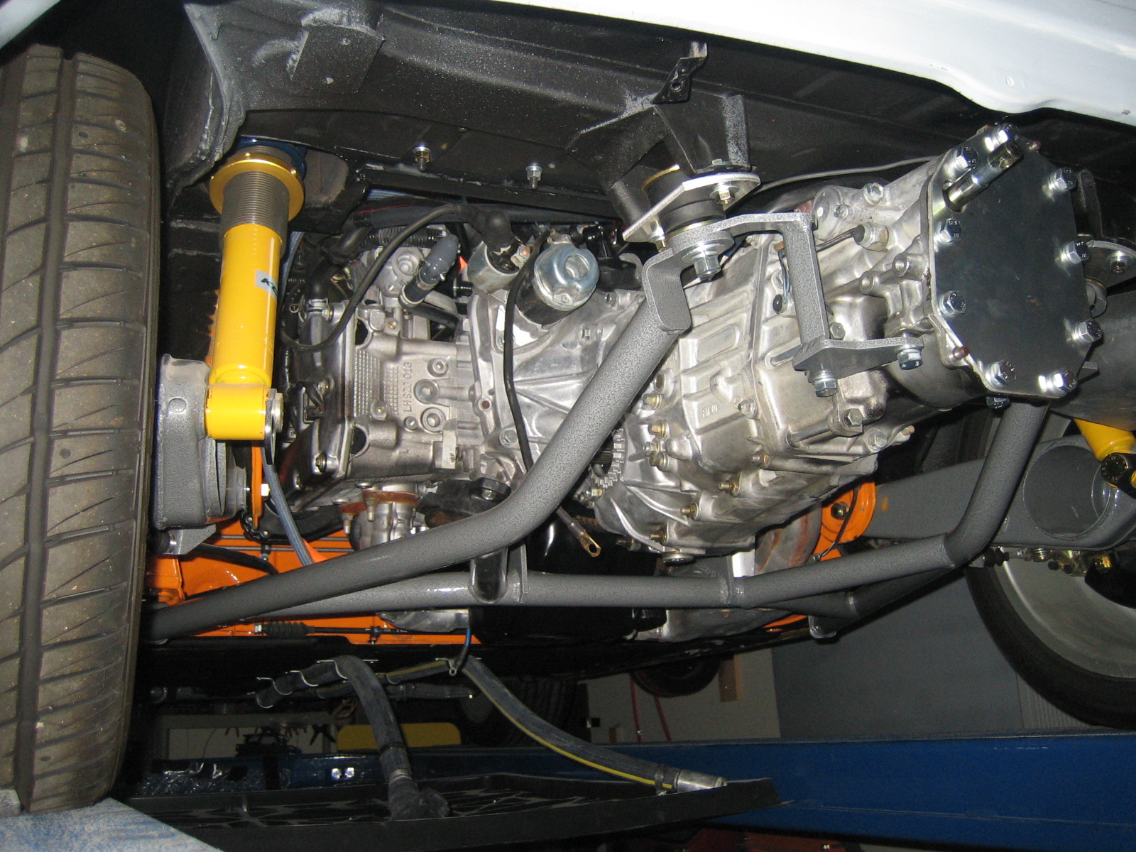 I am the new owner of Chris's 914 Subie conversion. I have started getting a bit more active on the board doing some research and developing a plan. The current plan is to put the car in the body shop for some block sanding, chassis stiffening and paint. It is going in the first week of July and is expected back six weeks later. Chris had painted the trunks, engine compartment and jams in orange (I believe L20-E). I will paint he car the same color with a touch of pearl, it'll look good in the sun.