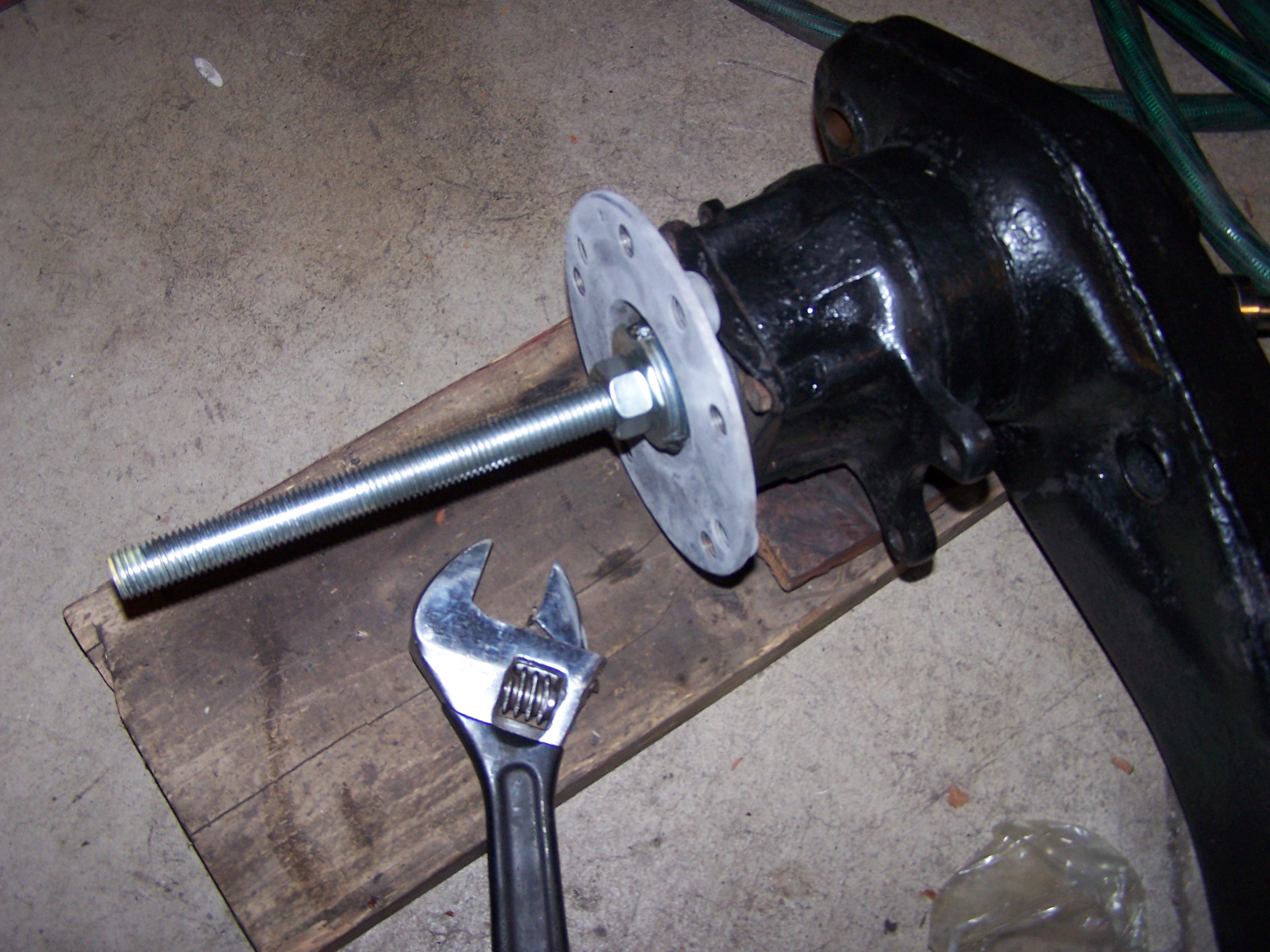 The bolt is welded to a 14ga plate then to the floor. The roller is free to turn on the sleeve. Works very well with virtually no deflection when the ebrake is pulled to its max. Attached image(s)