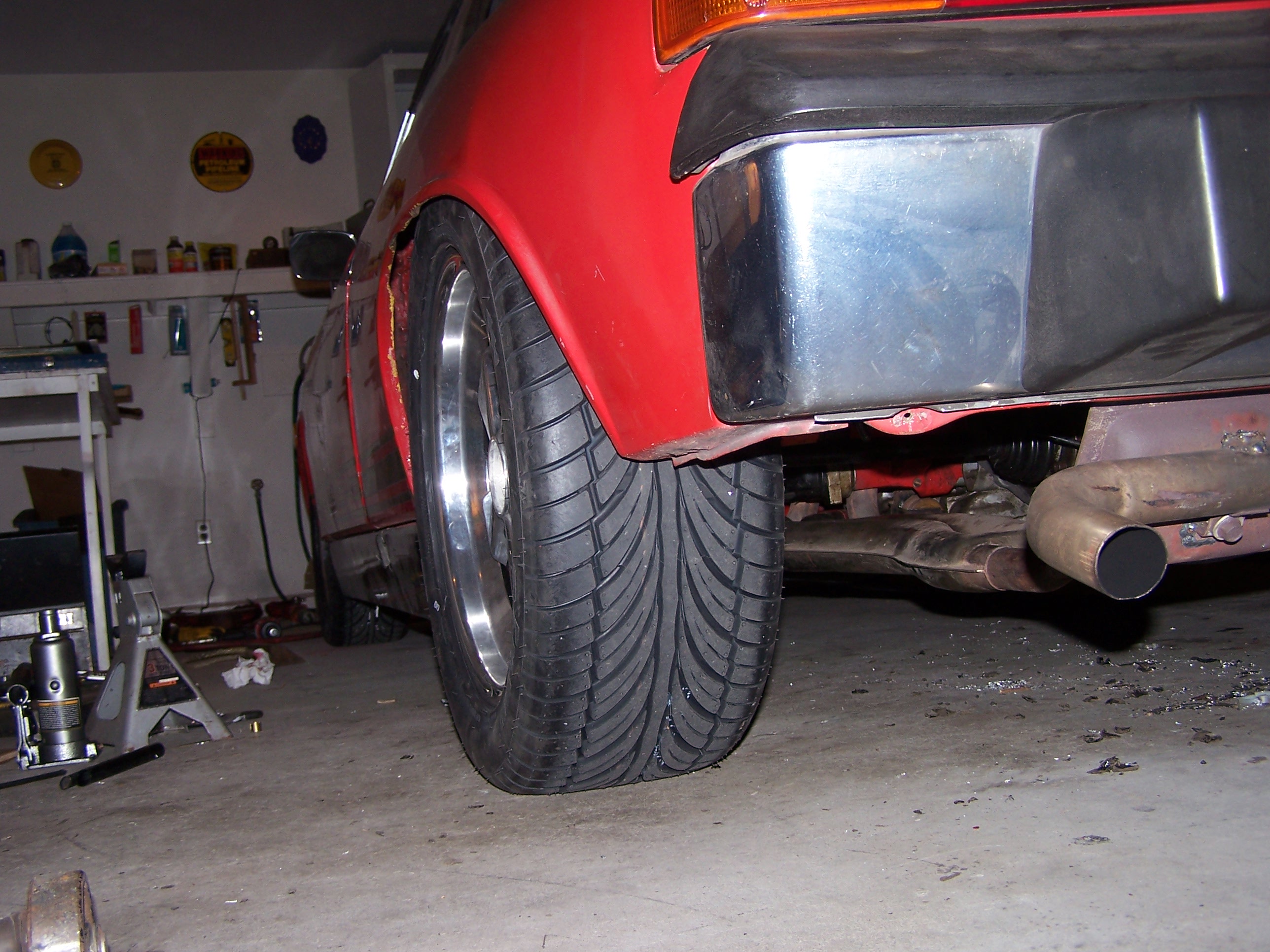 Had to pull the fenders out on each side. Have just a bit of room. I'll need to roll the fenders a little more then smooth out the wrinkles.