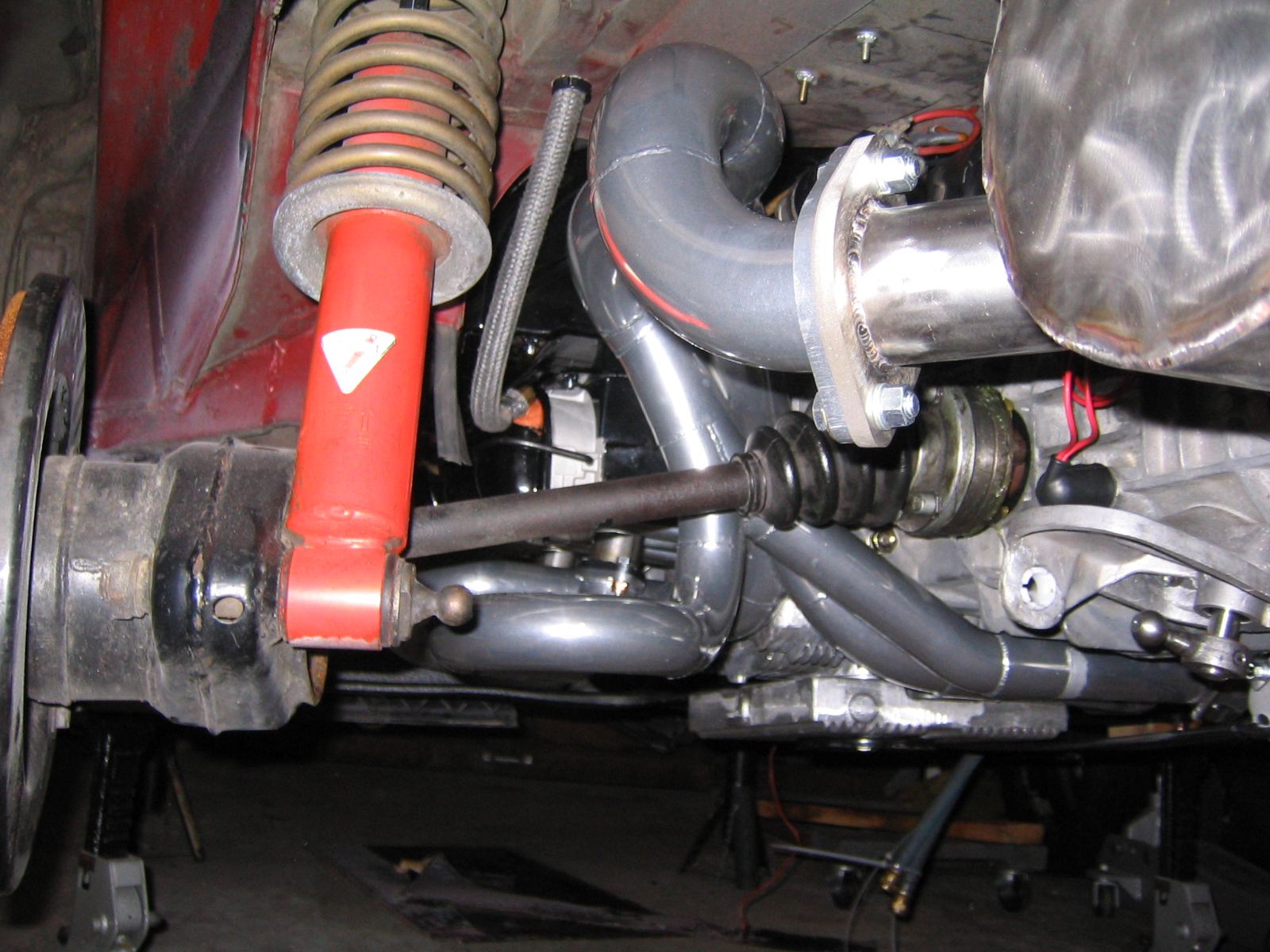Custom exhaust with Boxster heat shield.