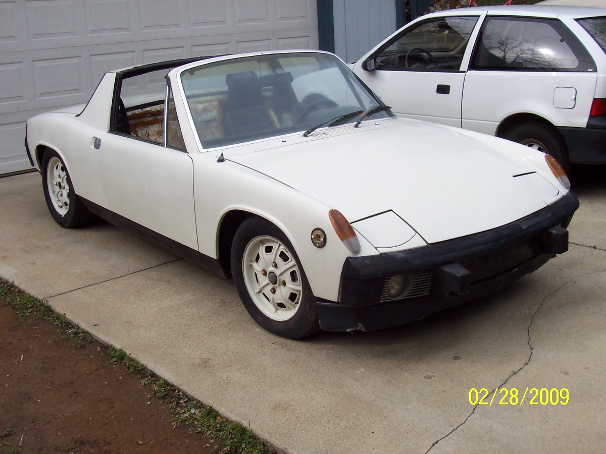 Welp, thought i would show off my first 914. It's a 1973 1.7. Got it for $900. Hope i didn't get ripped off! At $900, it's a beauty! How's the rust situation? How's it run/shift? FI or carbs? I'd put a nice orig front valence on, and refinish the alloys. White and original for a 73 looks great. Rust is very minumal. Longitudes are good, floor has very little surface rust, hell hole is good. Only place i found that is of concern is the pass inner door jamb in front. hole about size of a quarter. Both front and rear trunks are good. Motor is bad. I've pulled the motor/tranny and started on rebuild. It's FI but i'm going to switch it over to webbers. PO said the computer was bad. Unfortunately i think i'm going to sell it. Too many projects and this is the most expensive one. Only real thing bad on this car is that it needs is interior. It has door panels, but needs carpet and seats. Wanna buy it! (IMG:style_emoticons/default/lol-2.gif) |