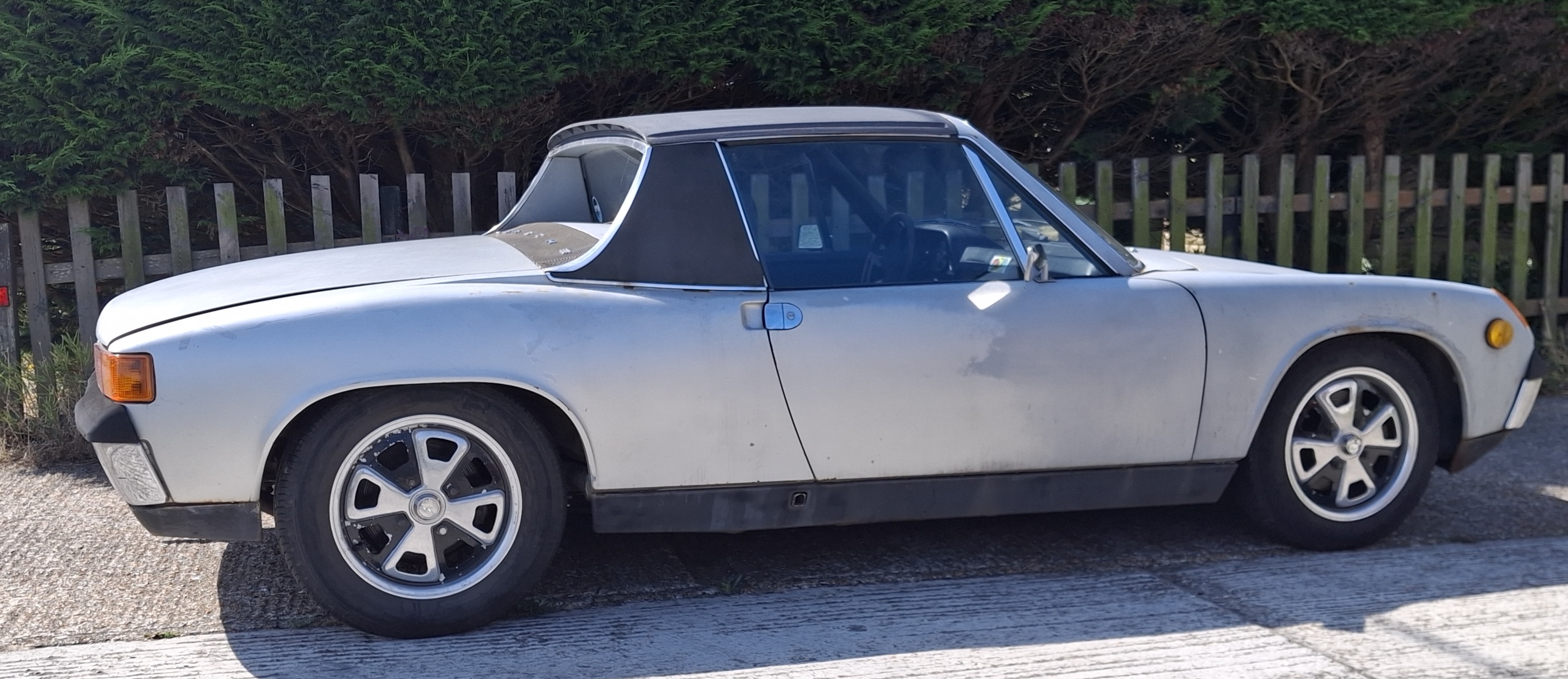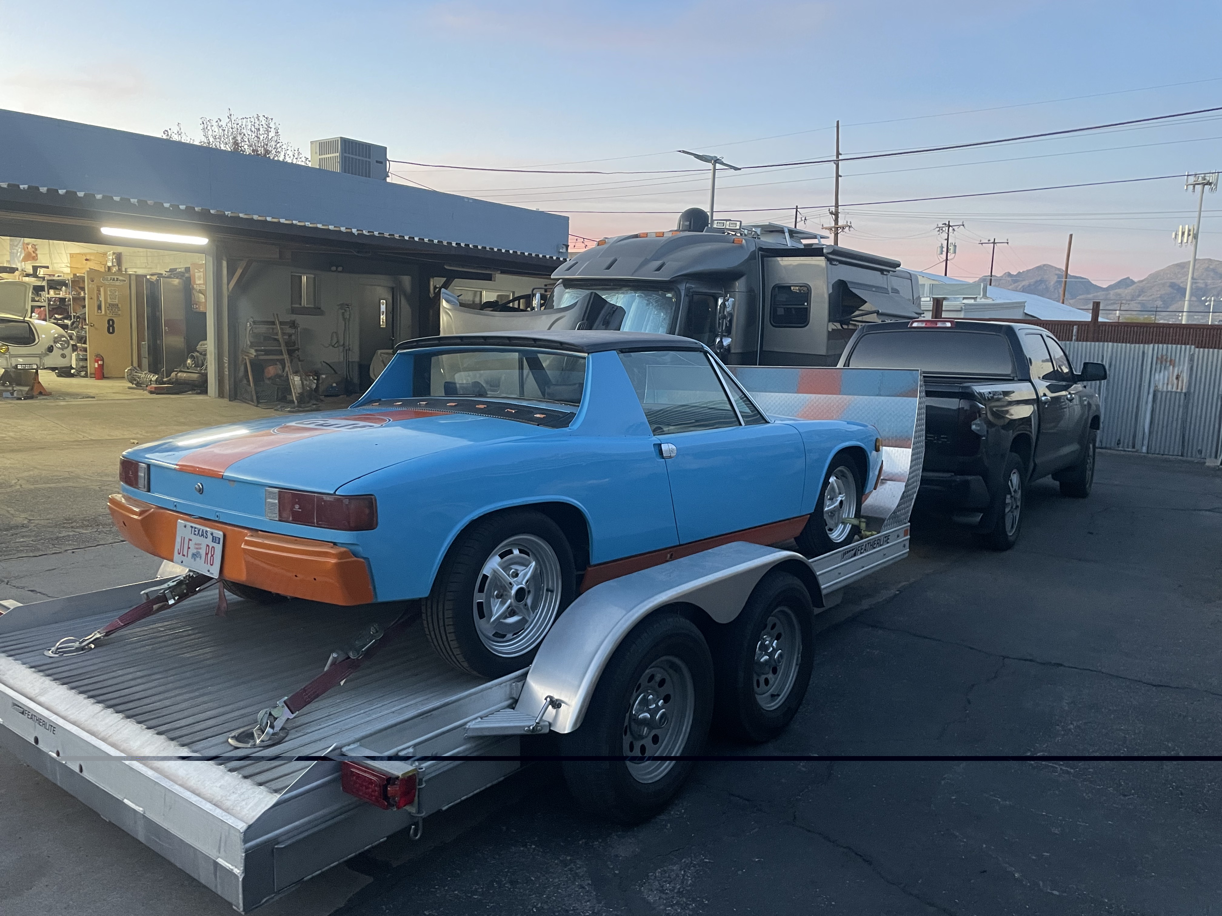 Let’s see your babies, 914’s only please! We really don’t care what kind of POS water-cooled you drive. Unless it’s a 914 V-8 conversion of course! Sorry our pic is a bit crappy. Mark & Kim Henry, Port Hope, Ontario, Canada Hey, I found and bought this "tribute?" Gulf Oil Porsche in Coarsegold, CA. It is my first 914. At least it used to be a 914. I know, the front end is enough to get me banned from this site. Came with a ton of extra parts and extra transmission. Why this car? Because the builder of this car put his heart and soul into creating it. The chassis has near zero rust (hell hole was a heaven hole). Never seen a track day. Pretty much everything you can do a 71 914-4 has been done and more. Best of all, it is street legal and currently registered. The rear bumper was for DMV reg. I don't like it. I was told it weighs just over 1200 lbs. After my first test drive, I understand why Porsche limited engine output to 85 hp. The cornering ability gives the driver a sense of invincibility. The 901 trans leave much to be desired. That's the craziest shift pattern ever. Wife isn't happy AT ALL. lol Sacramento ![]() ![]() [attachmentid=924146] Attached image(s)
