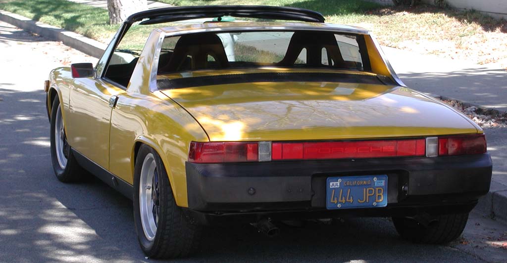 My new 914-V8. I bought this from a gentleman in San Diego a couple weeks ago. It is a '71 but has a lot of parts from a '75 on it. Resprayed yellow but did a pretty complete job of stripping first. It has a Renegdae modifiied 914 transaxle with 1st gear removed (or locked out) and taller 3rd, 4th and 5th.