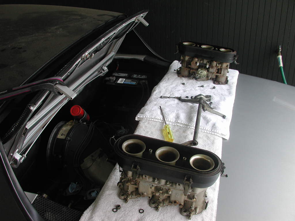 The clean carbs have worn throttle shafts.