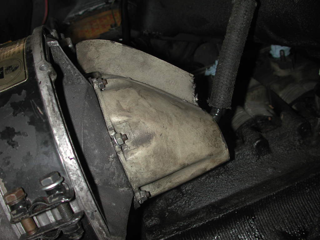 Once those are off (and various wires are unhooked) the shroud will lift and can be weasled to the back of the engine. A camera can be shoved under the shroud and a couple of pics will show the diverter and the wires/etc. Attached thumbnail(s)