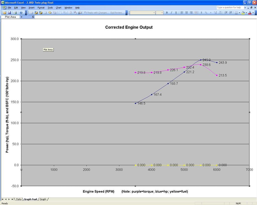 This is my Wife's recently completed German Look 79 Vert. It sports a 2.8L twin plug TIV and is pictured here two weekends ago laying down 195 RWHP and 206 lb/ft of torque with max HP@ 5,400 RPM and max torque at 3,500 at the Southeast Dyno Day (IMG:http://i52.photobucket.com/albums/g38/wrenchnride247/100_3403.jpg) (IMG:http://i52.photobucket.com/albums/g38/wrenchnride247/100_3434.jpg) here is the IDA Weber equipped twin plug beast. It idles at 800 RPM smooth as silk and has the throttle response of a crotch rocket. It runs 10.5:1 CR on 89 octane pump gas and this weekend it got 33.3 MPG on it's first long distance cruise. (IMG:http://i52.photobucket.com/albums/g38/wrenchnride247/100_3435.jpg) here is the youtube video of the dyno pull.. At the end you'll hear someone say "no way, that has to be a mistake".. The engine sounds so stock no one would ever believe it makes 250 FWHP. http://www.youtube.com/watch?v=WPJI6nhwy10 Here is the dyno graph from my dyno that was done prior to the event, the difference was the muffler that we had to run for dyno day pulled 20 HP from the engine, but Chris and I are working on the redesign now. Lok at the power and look at the revs, thats the amazing part. What N/A 911 engine can do that!! We can do twin plugs with carbs and this modified Nissan dizzy, or with EFI and twin plug direct ignition. This is one of the things I wanted to talk to you about! |