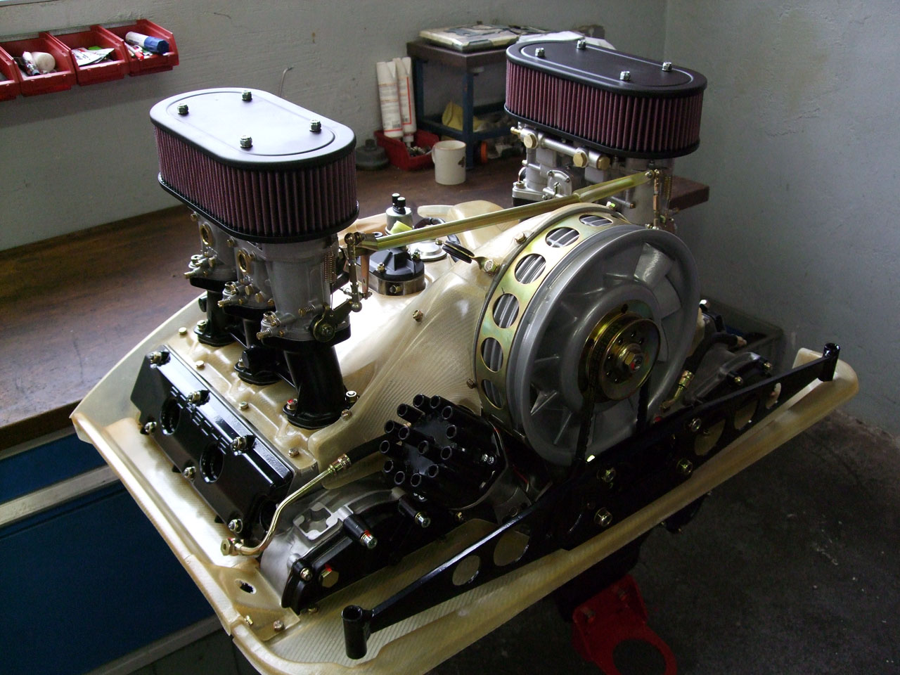 This engine has intake ports that flow 225 CFM, these are the only port that has outflowed the capability of a Weber IDF to date, hence the use of an IDA.These ports have the volume to overcome the characteristics that make an IDA equipped TIV hard to tune.