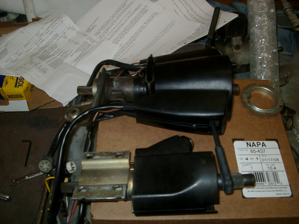 the column itself is from a '73 911, i also got the correct year momo steering wheel adapter, a '74 ignition switch assembly (supposed to be better than the pre '74) and the sheetmetal from the 911 dash with the mounting recess ... here's a picture of the lot: first order of business, rekeying the ignition lock. this is a major pain in the butt as the lock can only be removed by drilling out a rollpin. (IMG:style_emoticons/default/headbang.gif) there's a good tech article on pelican on how to do this: http://forums.pelicanparts.com/showthread.php?t=348306 i've finished the ignition rekeying and now i'll be spending the rest of the day cleaning off the 35 year old grime off all the parts (IMG:style_emoticons/default/piratenanner.gif) Andy |