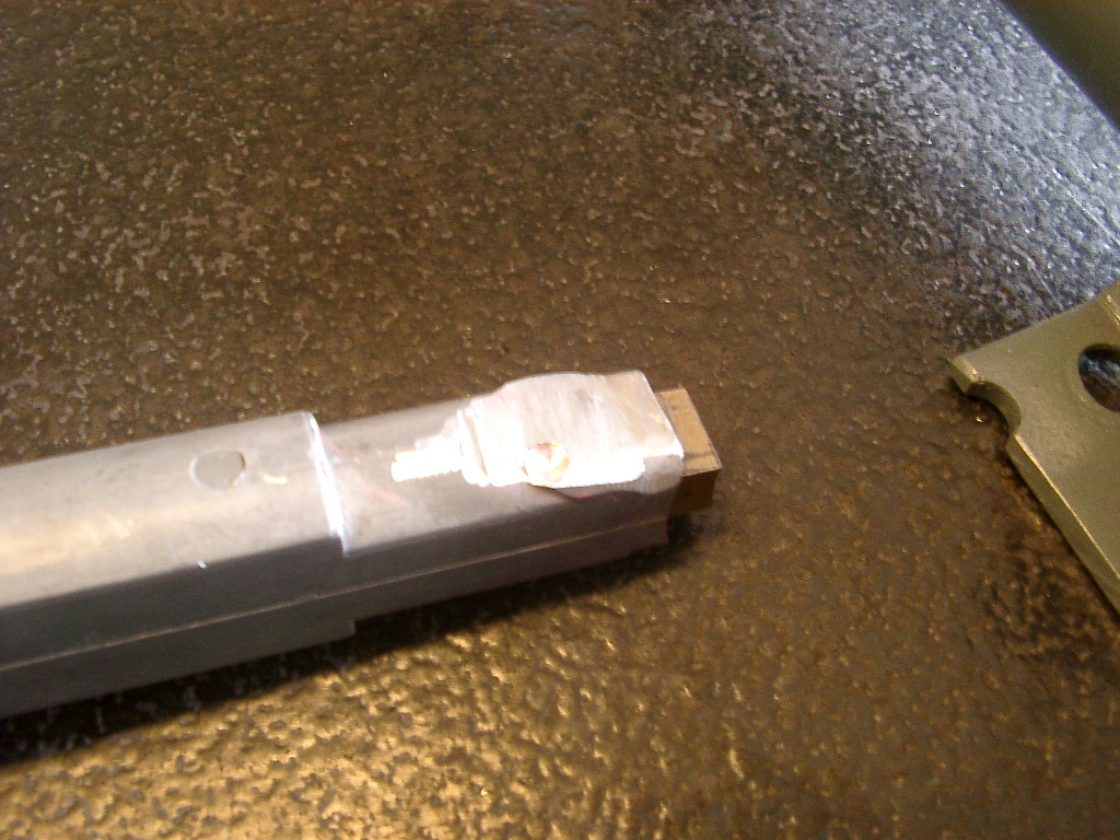 We then removed the original mount and the end bracket from the 911 column and added our own mounting tabs.