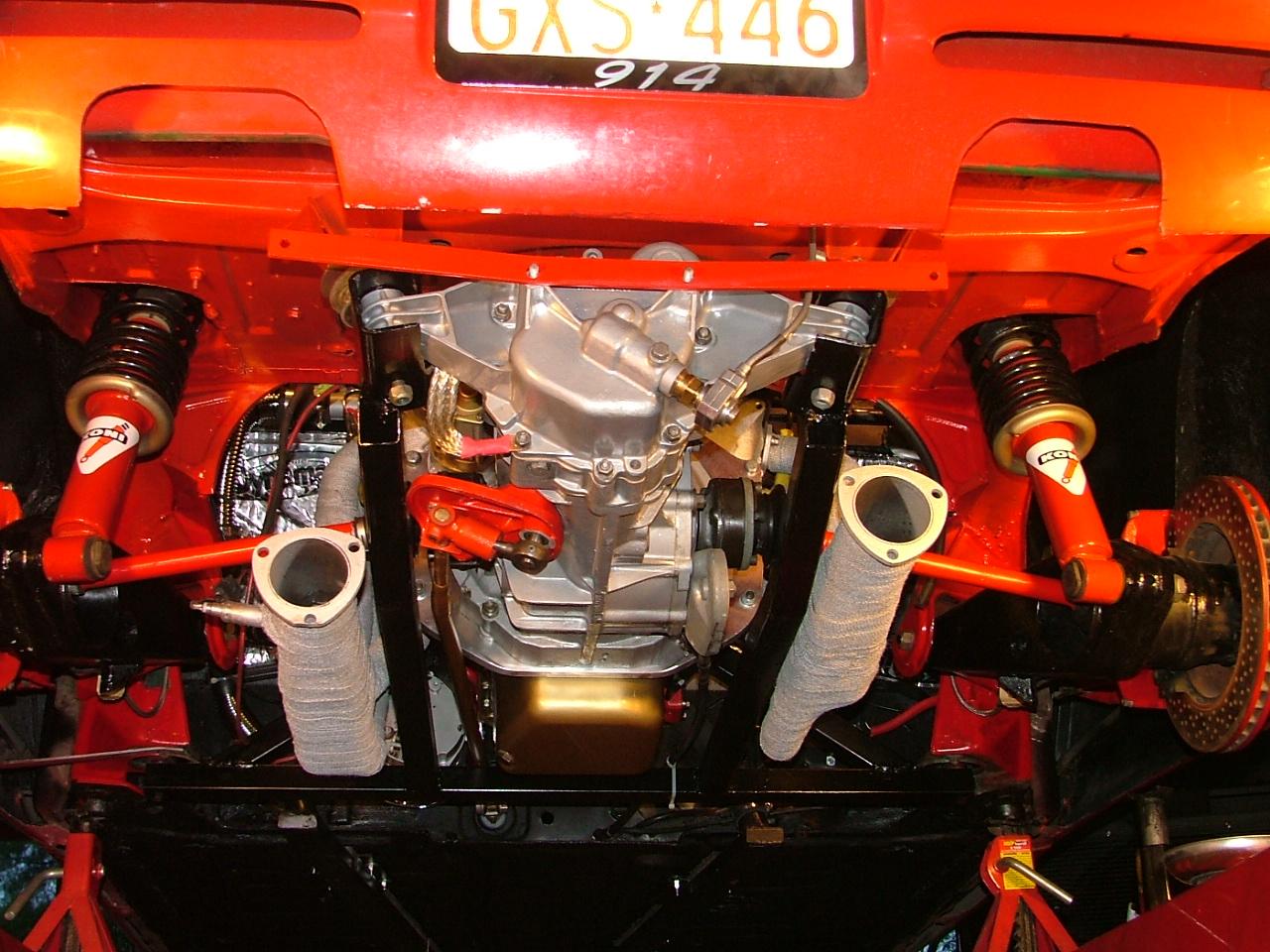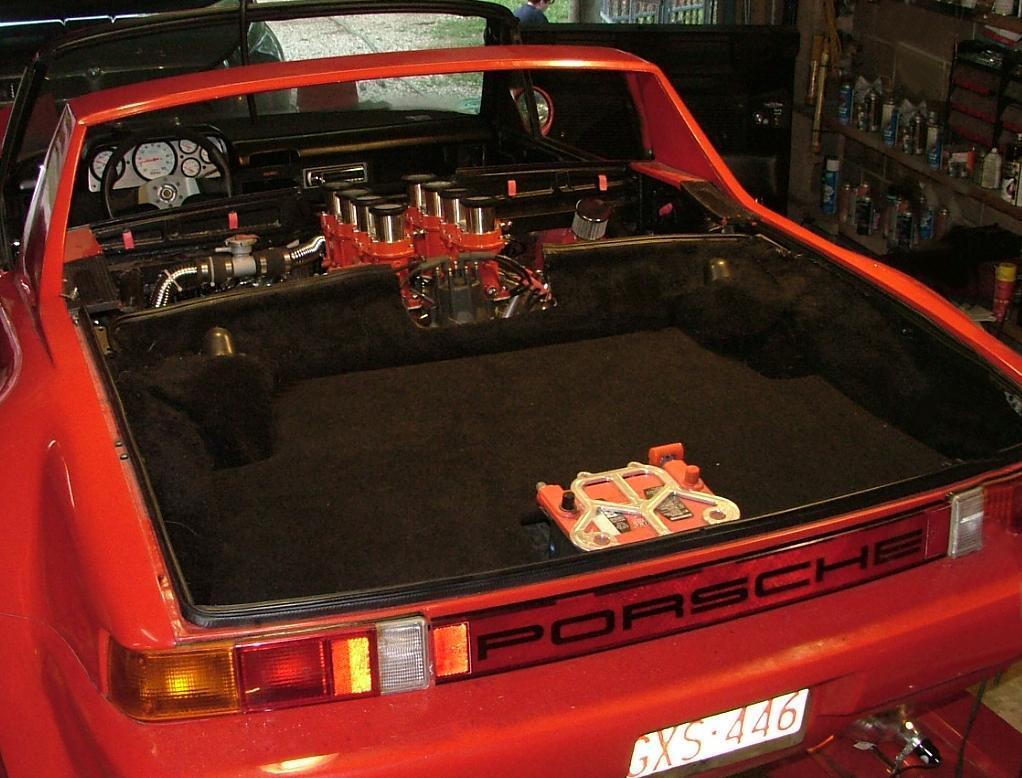 Is there a lot of butchering that has to be done? I can't see it happening w/out at least some being required... unless you put it in sideways maybe?? Just a small notch needs to be cut in the rear firewall to clear bigger distributers. A lot more cutting is needed to install the radiator than the V-8 engine itself. This is what 500HP looks like... (IMG:http://renegadehybrids.com/914/Customers/RichardL/Pic02.jpg) |