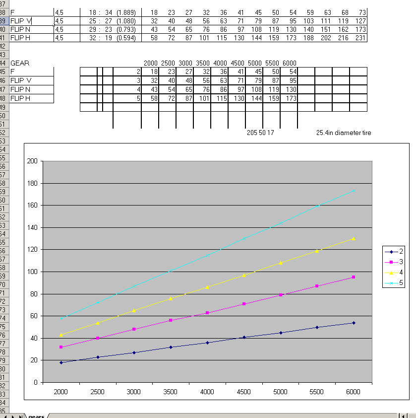I see said the blind man, When you say "Flipping" you mean changing / Switching the order of the gear on the Shaft? I tend to think it is the set, the pilot and output gear? I do understand the concept of closer ratio but I need to get up to speed (no pun intended) on phsycally moving the gears around on the shafts. It seems you would have to move both ? to maintain the distance between the center point of the shafts, which would be Down shifting going fron 3 to 4th. Give me some time and it will come to me.