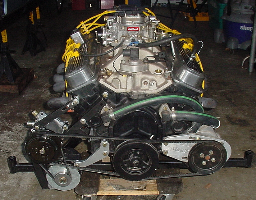 I figured it would be easier to just pull the motor since I wanted to also install my air conditioning. With all all mocking-up of the compressor mounts to put the compressor to be driven off the alternator, I wanted to make sure I got it right with everything lining up properly. The load on the motor should be more balanced having the ac an alternator on one side and the water pump on the other. |