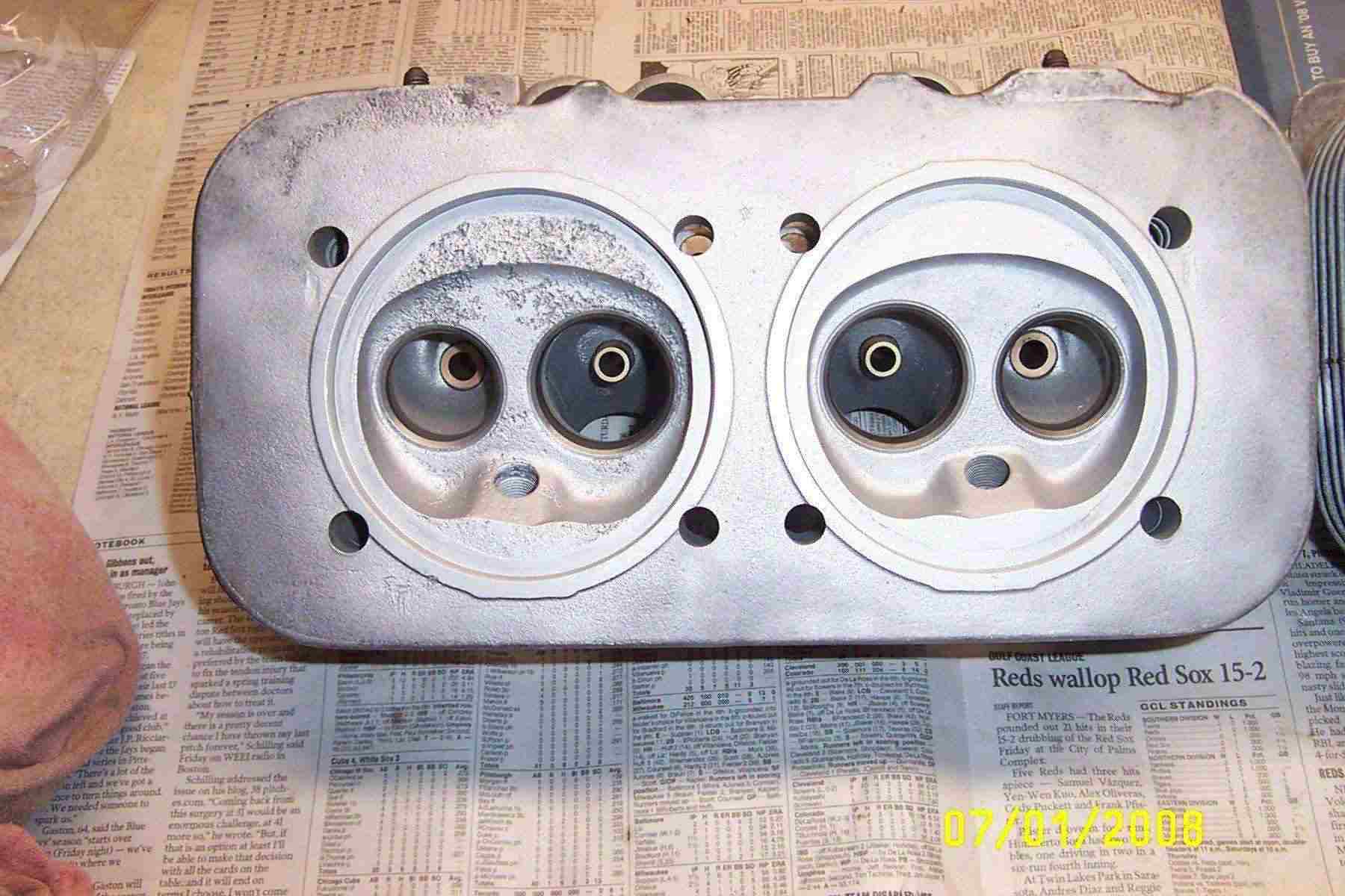 We got a 1973 GA series 2-liter motor that had low miles but sat for a long time. The pistons and cylinders are gone, crank probably just needs ground, case is good, the 039-101-371A cylinder heads look great EXCEPT for one of the chambers. It is badly pitted from corrorsion.