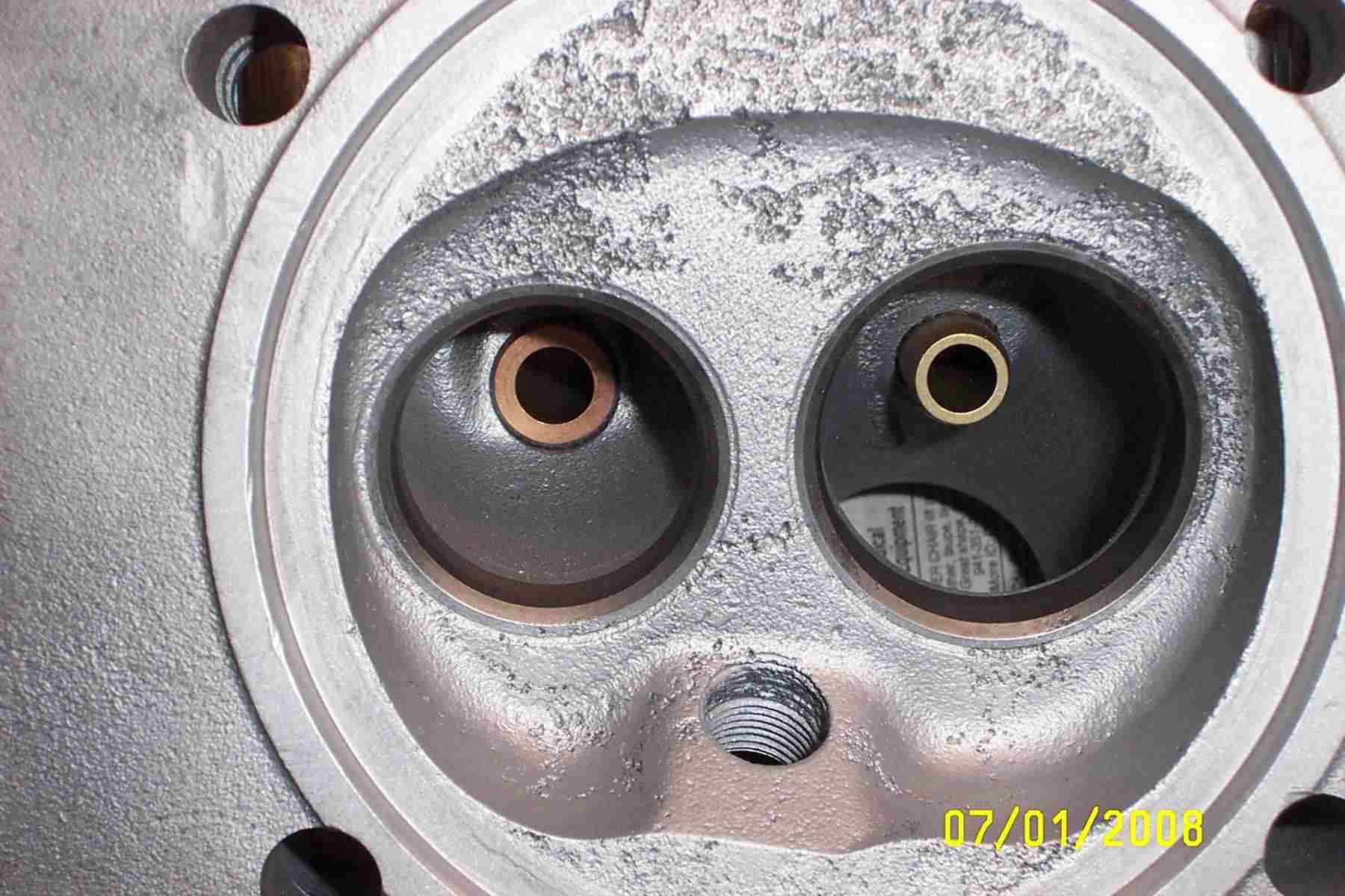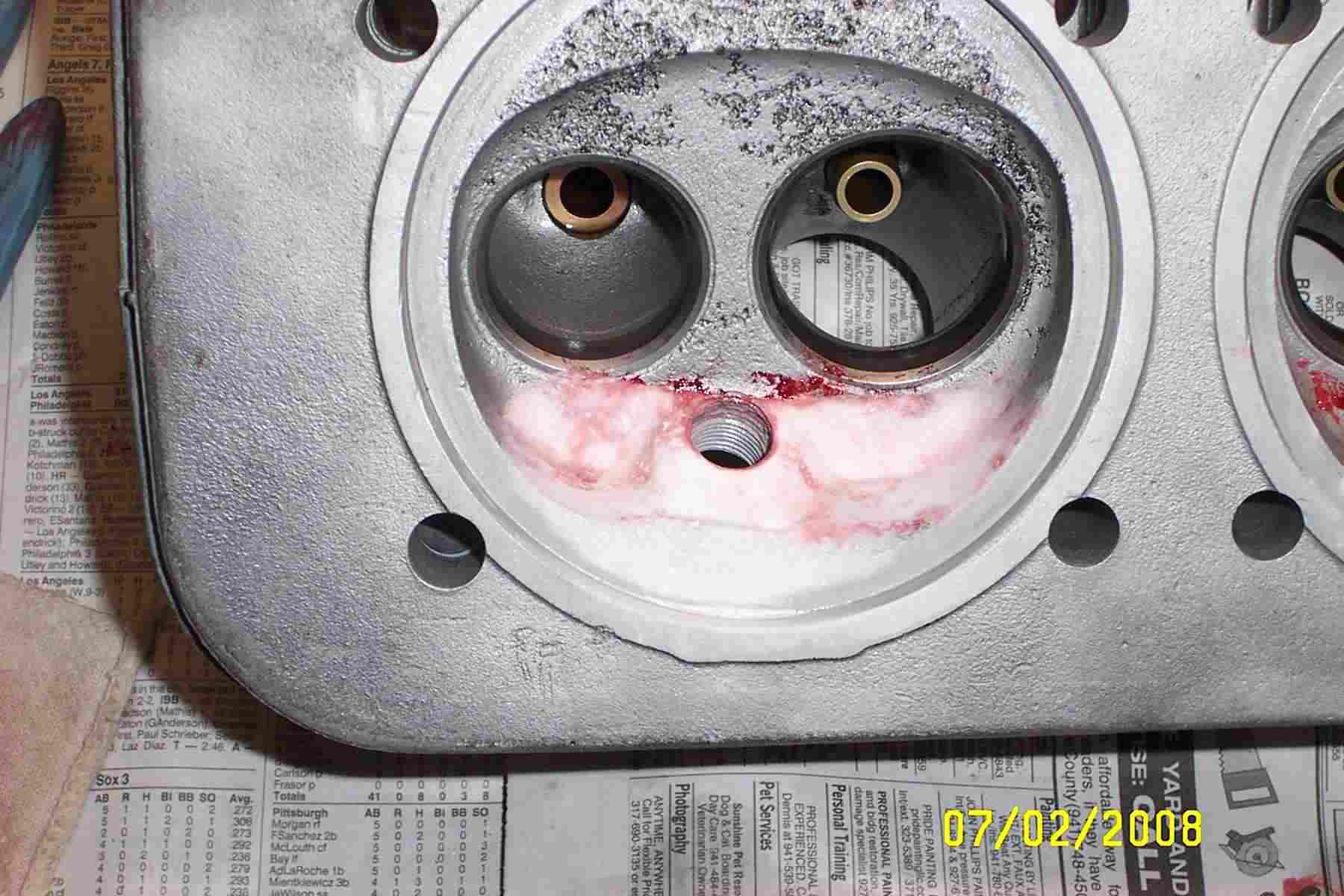 QUOTE BTW there is a second crack in the photo that Mark is using to point out a crack. Look over at about 2 0'clock on the plug threads. There is another crack forming that, left unrepaired, will head up the plug threads and toward the ex. seat. Tyhats the first one I saw. these heads crack in the same places time and time again. |