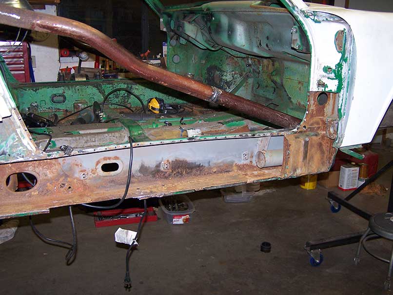 Before you get too carried away cutting out metal, I think you should brace the door openings while it is on the rotisserie. The longs have some rust inside, they all do. There have been several threads about it, I will search and post some links. Glad you got started on the build, keep us posted. Jim |