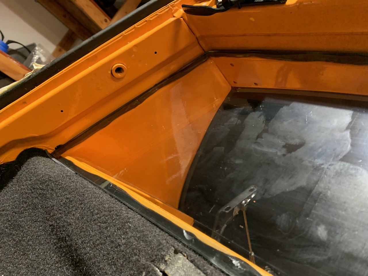 Based on the fact that I had it running previously I've resigned myself to that the engine not starting is something simple, or that some wire was connected wrong. My mechanic will be back in 2-weeks and I'm almost positive he'll have it working in less-than an hour once he's infront of it. Stepping away from the wiring again, I'm focusing on the 'fun' part of the restoration and yesterday was all-about the rear-window. I'll be honest, I was a bit-intimidated reading up about the installation at first. For those looking to do the same or a 'How to' guide, the write-up in the Classics Section (Rear Window Fix/Install Step-by-Step, get rid of rattles and leaks - by Eric Shea) will give you everything you need to know. One 'note' I would like to add as the post was created some time ago; The 'rubber mounts' mentioned in Step 5 are now available via 914Rubber (link to their website here > 914Rubber.com). They are the same spacers/rubber mounts used to install the front windshield. For me, this installation was easy enough. Just like so many other 'finishing items', it's all about prep work. Make sure to clean and prep the chassis window frame, I used a bit of lacquer thinner and followed with odorless mineral-spirits, as well as the glass itself. Also, consider cleaning the body-pieces on either side of the engine bay... This is the easiest it will ever-be. Leave the glass in an easy position to pick-up (it's awkward) and begin to apply the butyl tape. Just like the installation thread, I started in the passenger top-right corner, and began to work my way around. In my opinion, it's not so 'sticky' as much as tacky, and pretty easy to handle. Get it as straight as you can, but also remember it will smush and deform once you press on the glass. Also, expect to have extra tape (maybe 24-inches), and be prepared to cut the tape once you've made the full 'loop'. Final step here is to give it one last 'push' all around to make sure it's making contact, and then remove the paper-backing. From here, place the rubber spacers (I put mine in the extreme corners of the bottom of the glass) and pick-up the glass. I found it easiest to line up the glass below the frame, and then go directly up and in, resting one-side on the rubber-spacer then the other because there is a channel you have to get into. This will let you make sure the glass is positioned properly, and if you're a bit off, you can still reset the glass because it's not making full-contact with the tape. Don't worry about resetting it, the tape is pretty playable and workable. Once it's exactly when you want it, give constant pressure to the edges of the glass and push it toward the tape. I did this for about 5-minutes, working my way around the glass. If you have OCD, like myself, I also took this opportunity to 'push in' the butyl from the backside using my fingers, so that everything looks uniform. This was easier than 'cutting' any globs that may have formed. Final step is to take black-electrical tape, and apply it at the bottom. This is purely cosmetic. Some notes I had after completing this... - I wish I would have painted the body-color strip that is on the bottom-portion of where the glass will sit. Kinda looks weird that it's orange, but I also think that this will get covered by the engine deck lid/rubber molding. - I wish I would have gone 'higher' and 'lower' when putting on the butyl-tape along the top and bottom. I had to push-in alot of tape once I was done, and looking at the photos I could have applied it better, touching the top-portion of the roll-bar and top-most portion of the firewall. - Erics write-up specifies putting the VW logo 'readable from the inside', behind the Drivers head. I put it on the opposite, legible from the outside, because that is how the windows are. Doesn't really matter, unless I'm missing something (IMG:style_emoticons/default/confused24.gif) - I don't plan on running a back-pad, so I'm going to look for 'wider' electrical tape. - All in, this took me about 1.5 hours, including the prep work to the frame and cleaning the glass. |